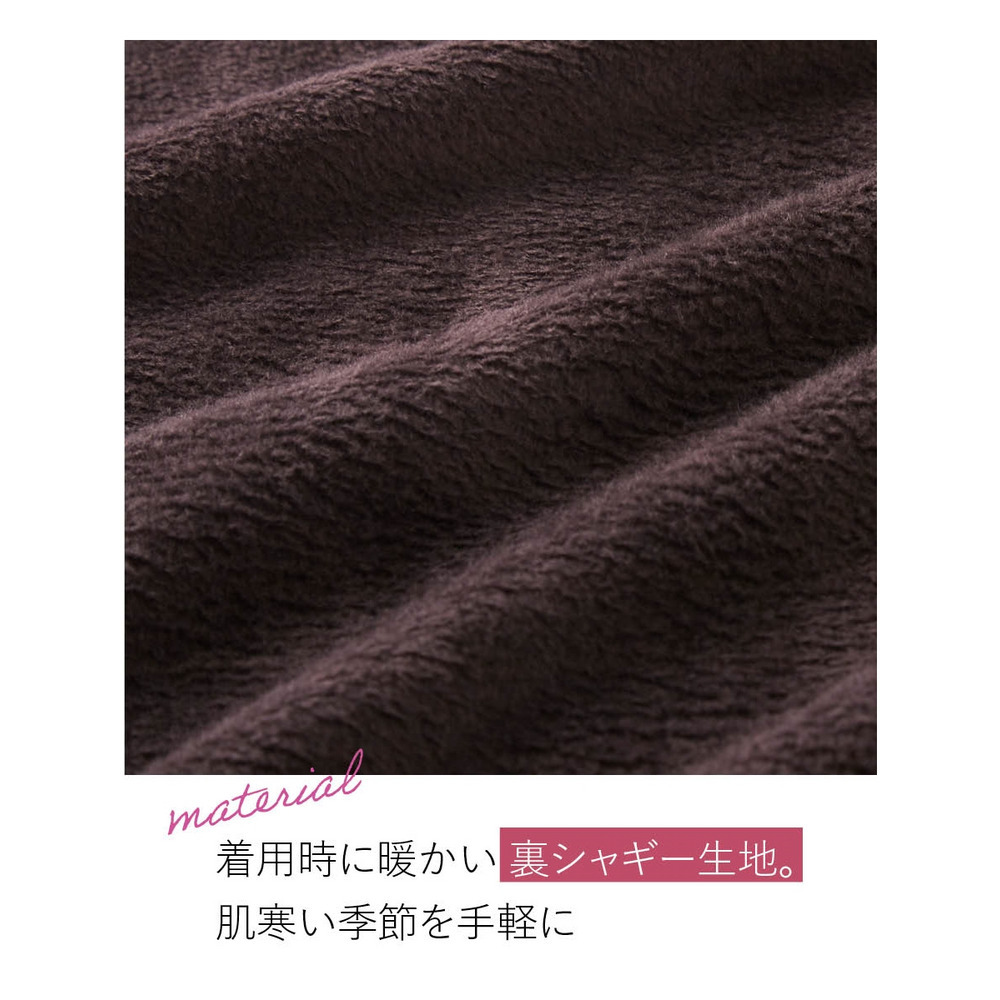 肌触り抜群の柔らかい裏シャギー素材を使用しているため、これからの季節にぴったりの暖かさ。