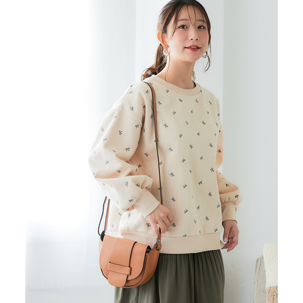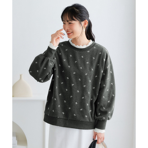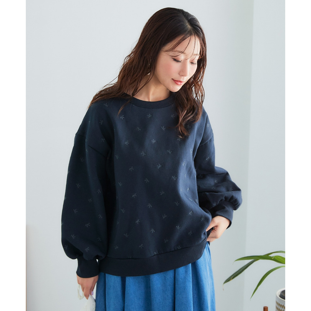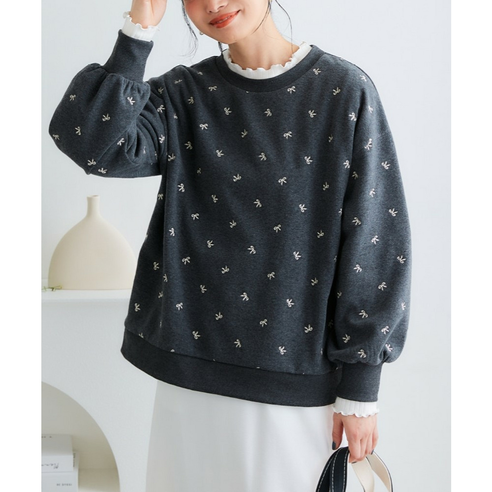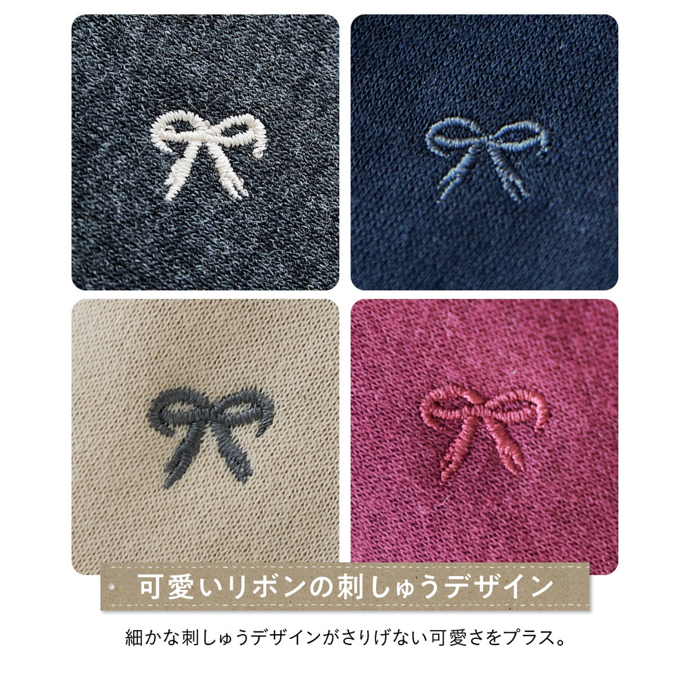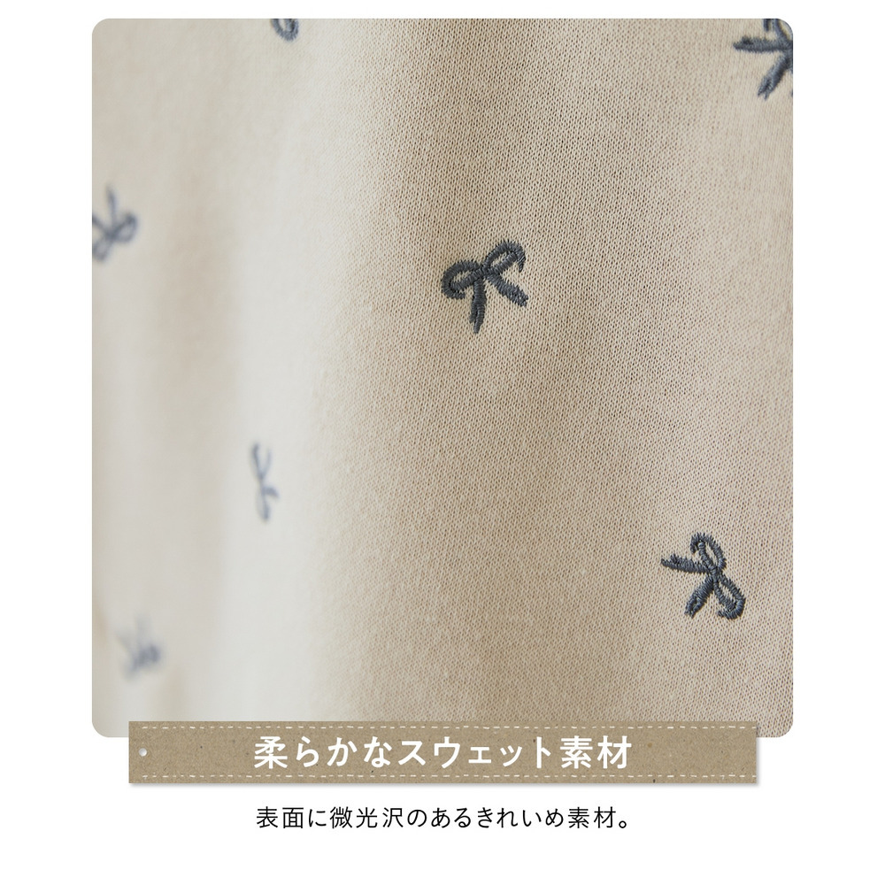 全体に散りばめられた小さなリボン柄の刺しゅうが、大人可愛いアクセントになっています。