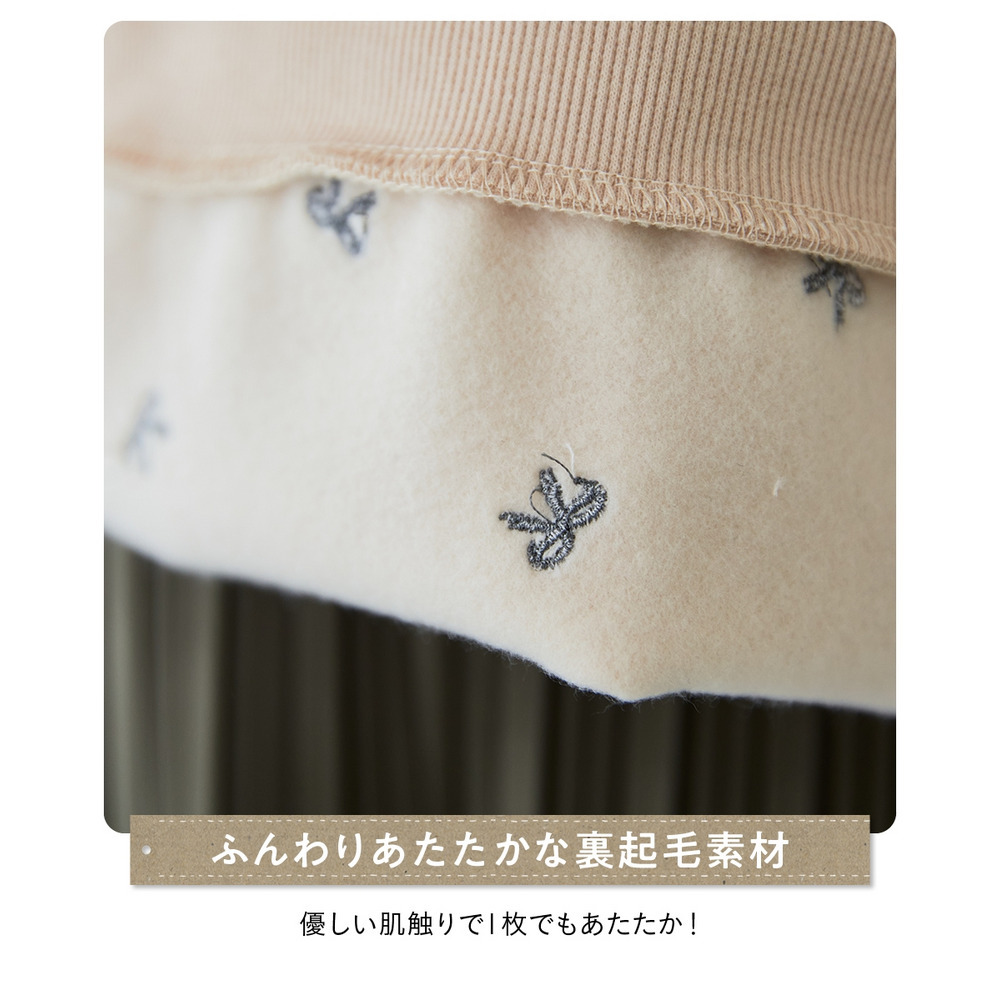 ふんわりと肌触りの良い裏起毛素材を使用しているので、寒い季節も暖かく快適に過ごせます。