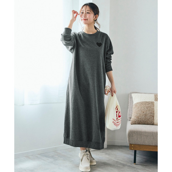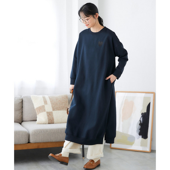 柔らか裏起毛ワンポイント刺しゅうゆるシルエットワンピース 大きいサイズ