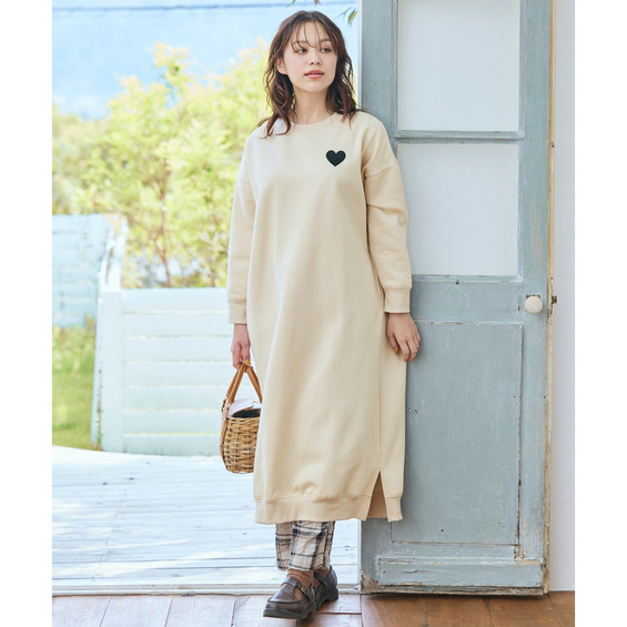 胸元にはワンポイントのハートの刺繍が施されており、シンプルながらも可愛らしいアクセントになっています。