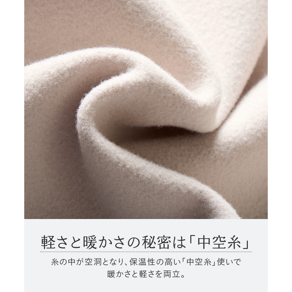 軽くて空気を含みやすい糸で軽さと暖かさを両立し快適な着心地に。