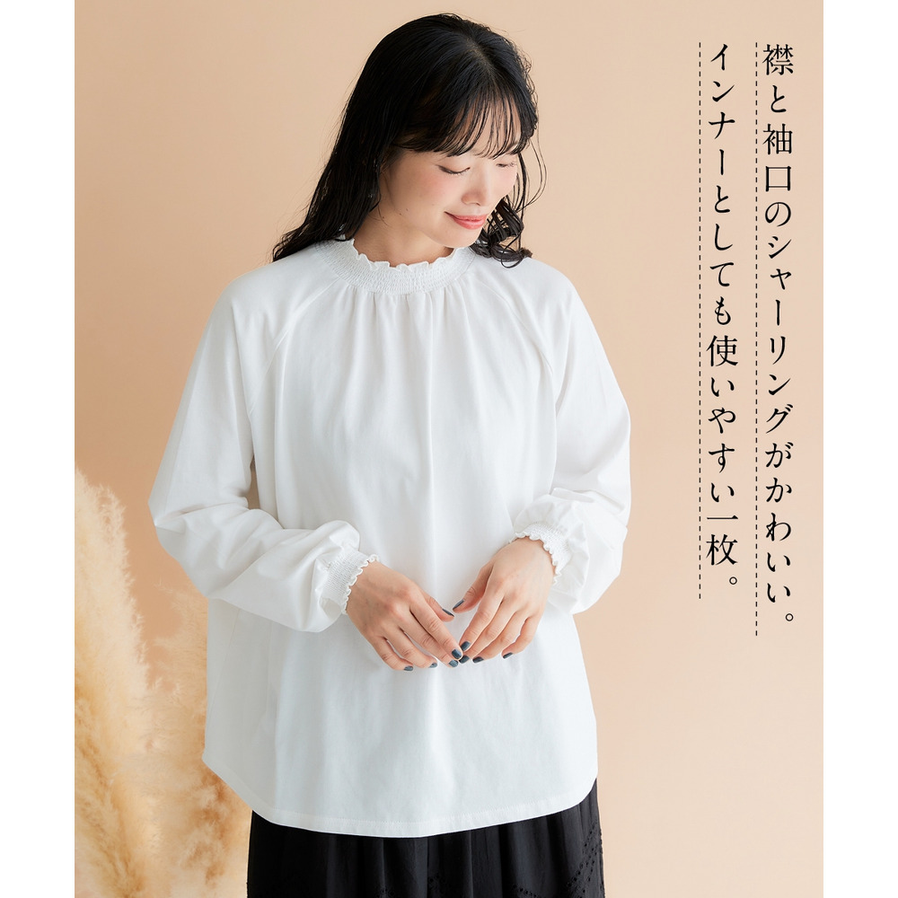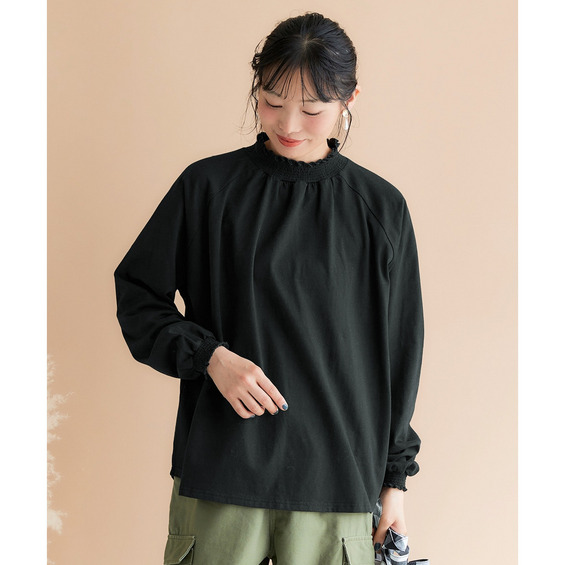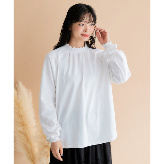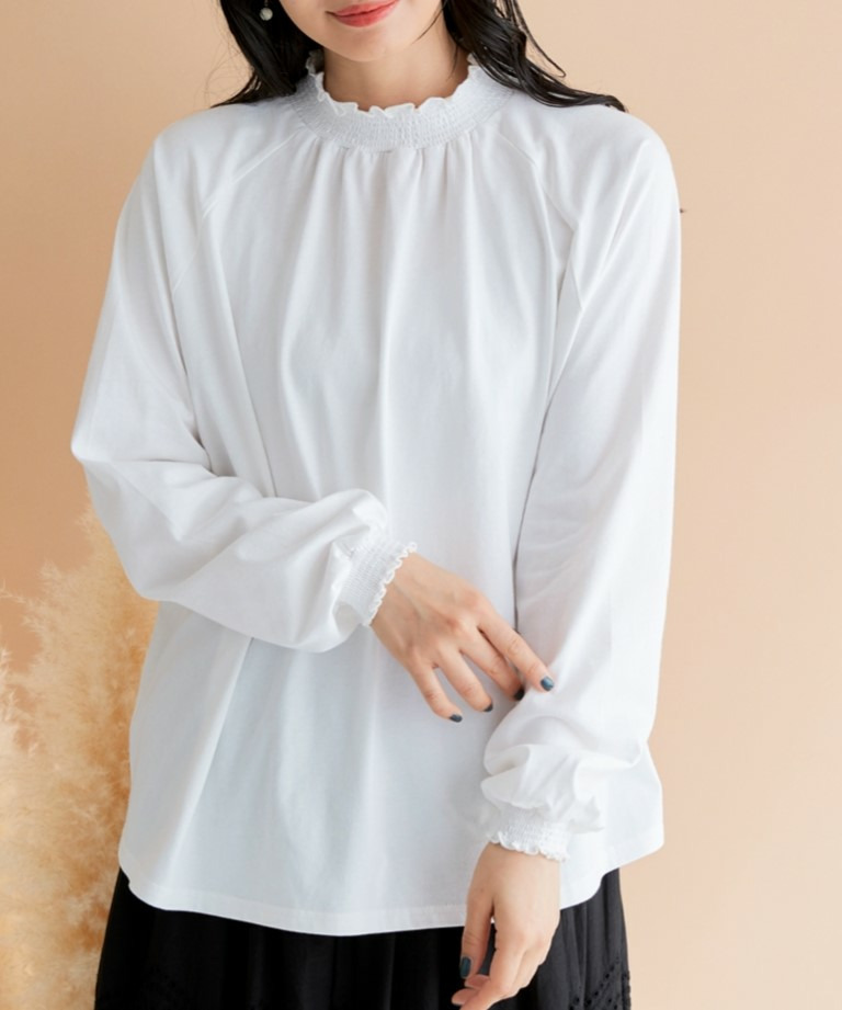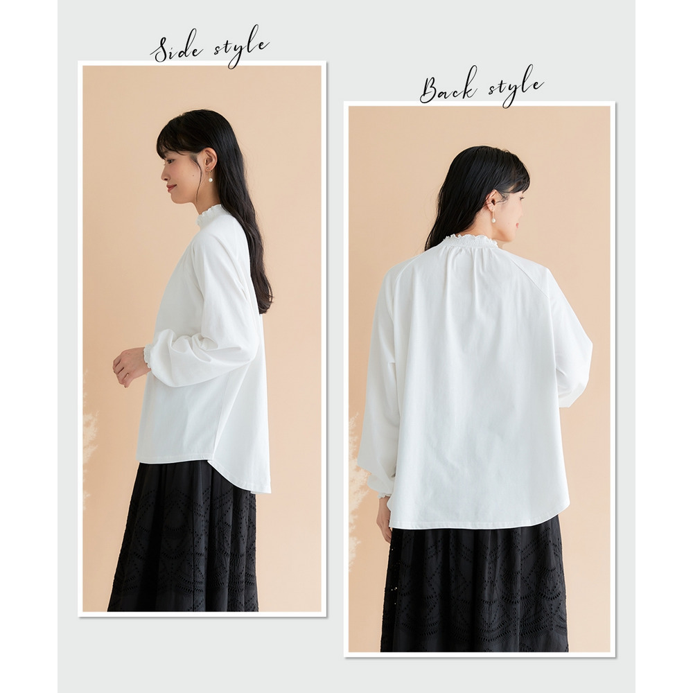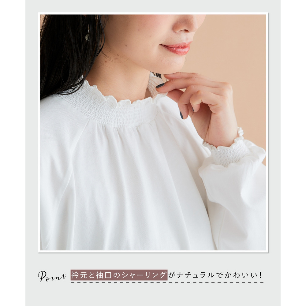 袖口と裾にはシャーリングが施されており、ふんわりとした女性らしいシルエットを演出。