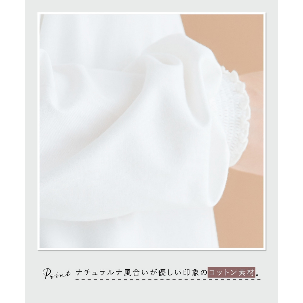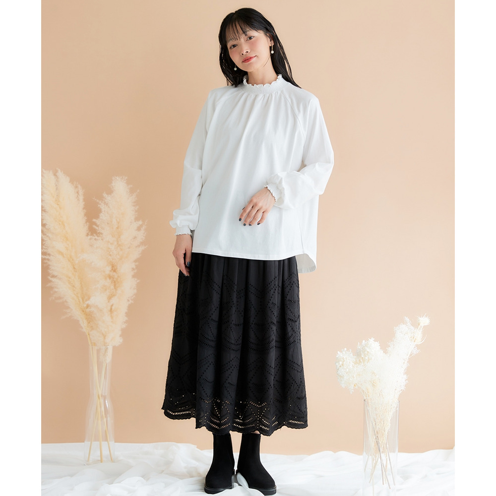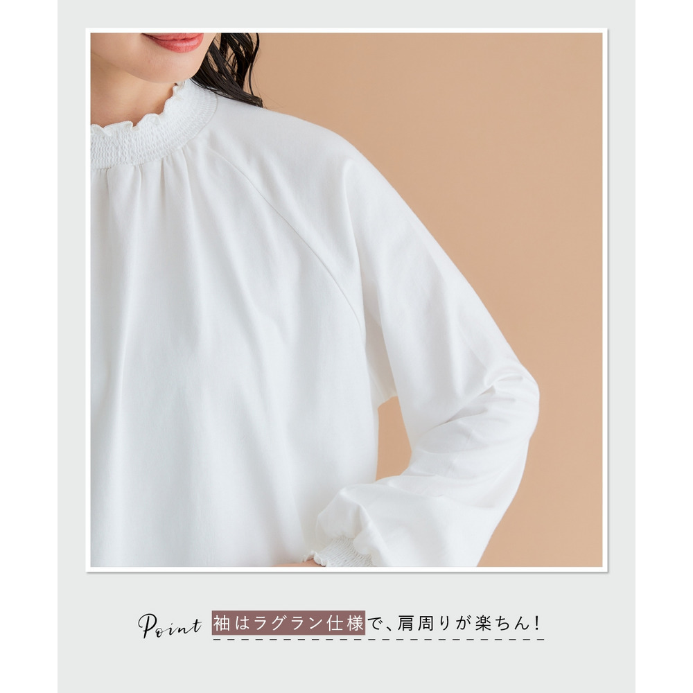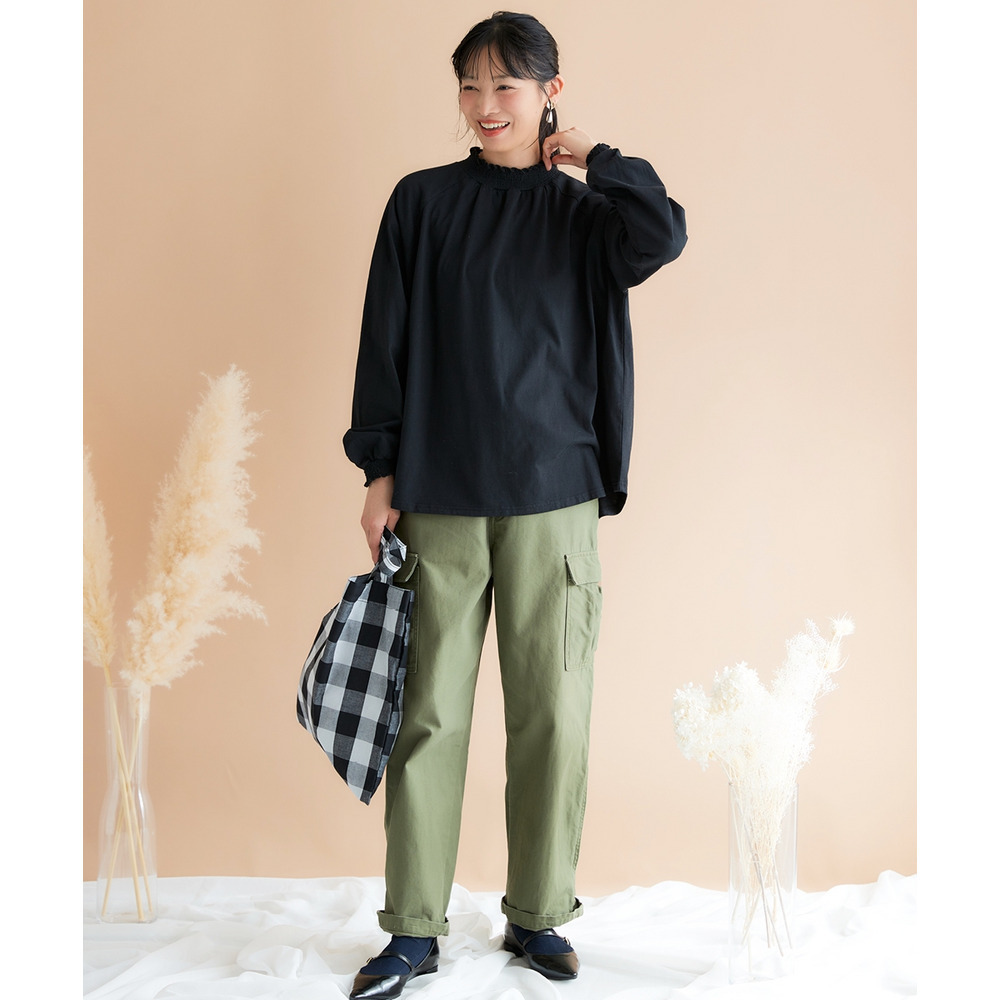 袖口と裾にはシャーリングが施されており、ふんわりとした女性らしいシルエットを演出。