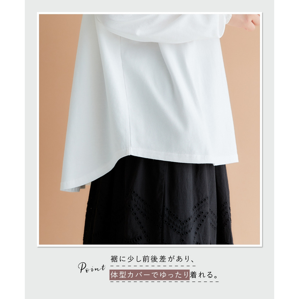 ゆったりとした身幅は、体のラインを拾いすぎず、気になるお腹周りもさりげなくカバー。