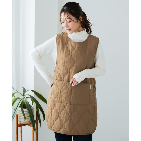 キルト×裏ボアベスト型エプロン(はっ水) 大きいサイズ