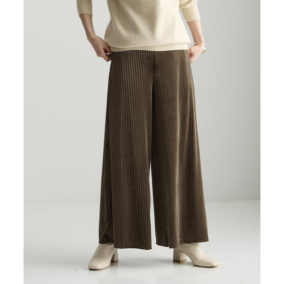 素材で魅せる、上品さと抜け感のバランスコーデの印象を左右するベロア素材だからこそ、日常にも特別な日にも、自然に寄り添ってくれる一本です。