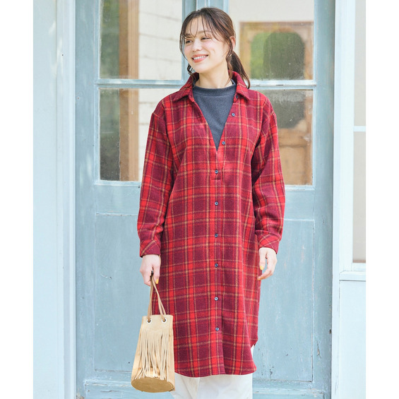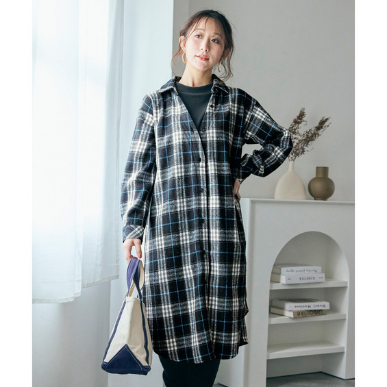 【カジュアルデイリースタイル】ワンピースとして一枚で着用し、足元はスニーカーやショートブーツを合わせるだけで、こなれ感のあるカジュアルスタイルが完成します。