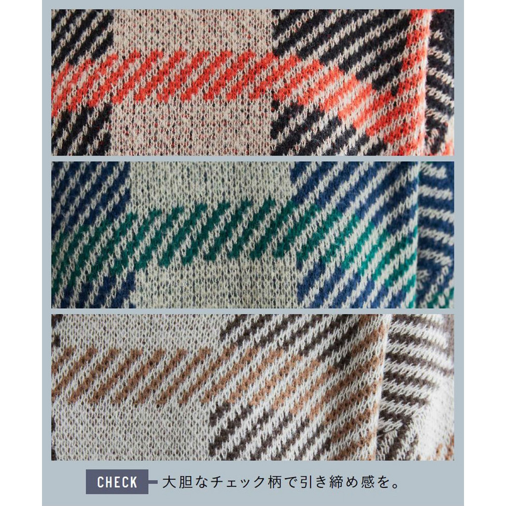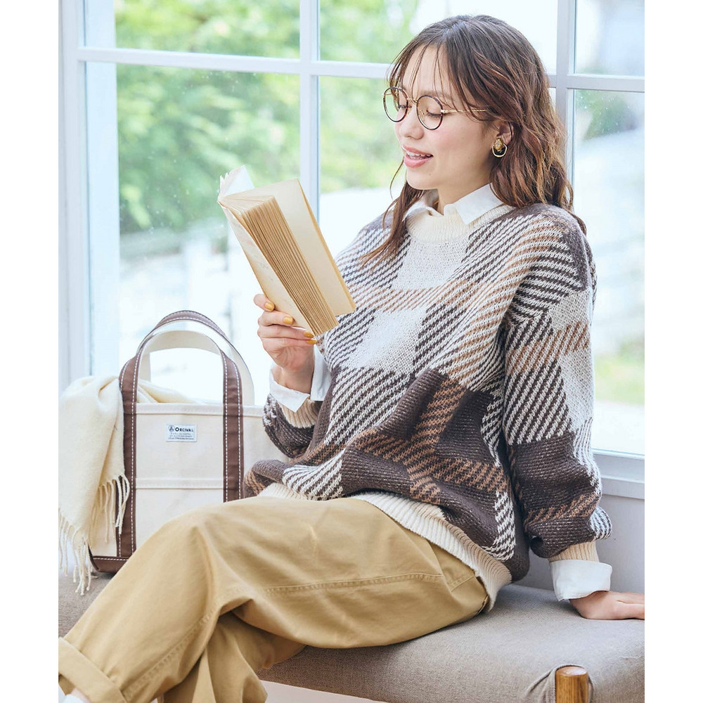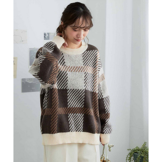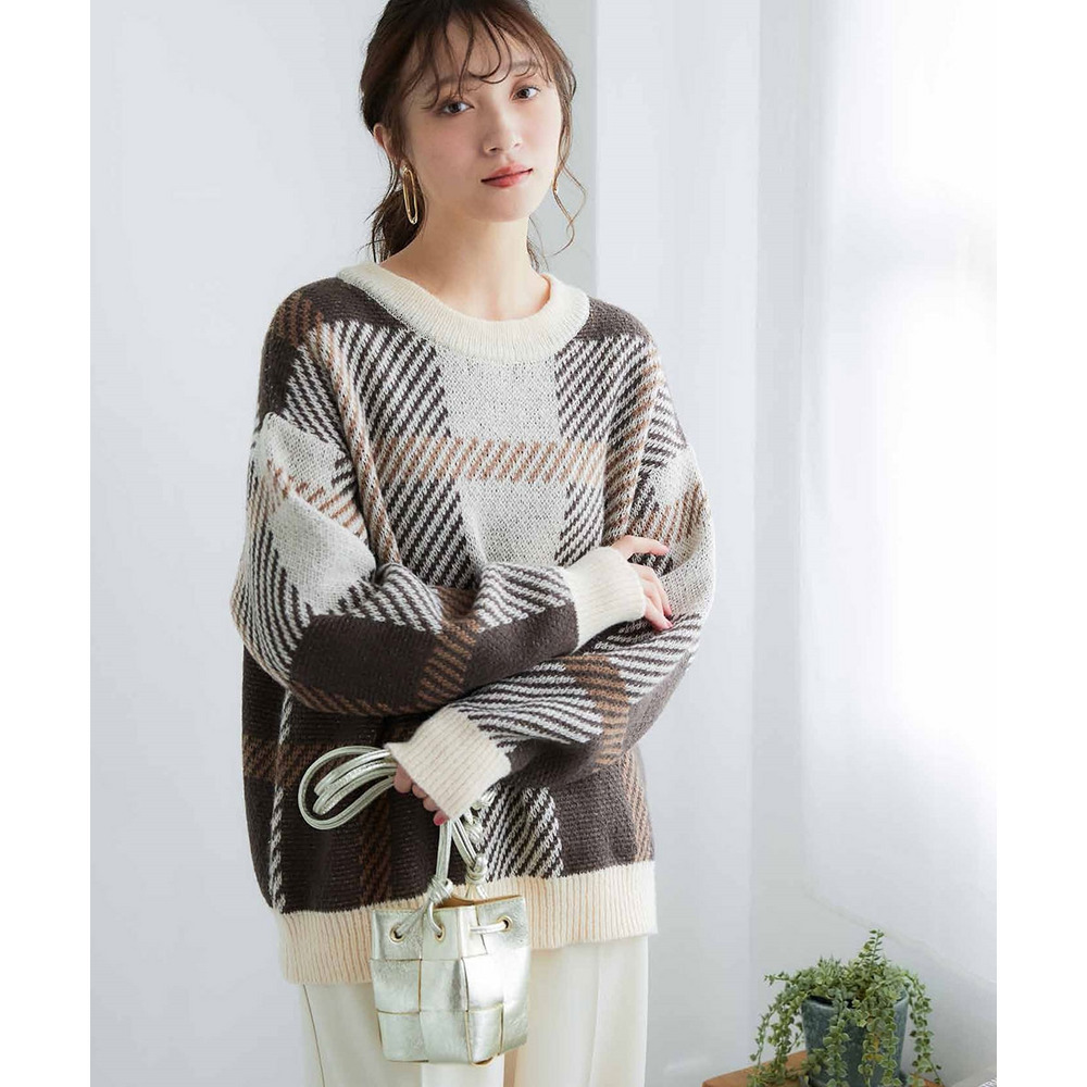 さりげなく映える大人の配色ニット定番のチェックには落ち着いたモカ系を新色追加!