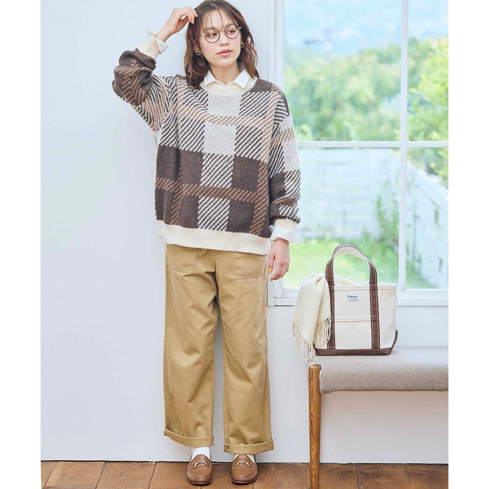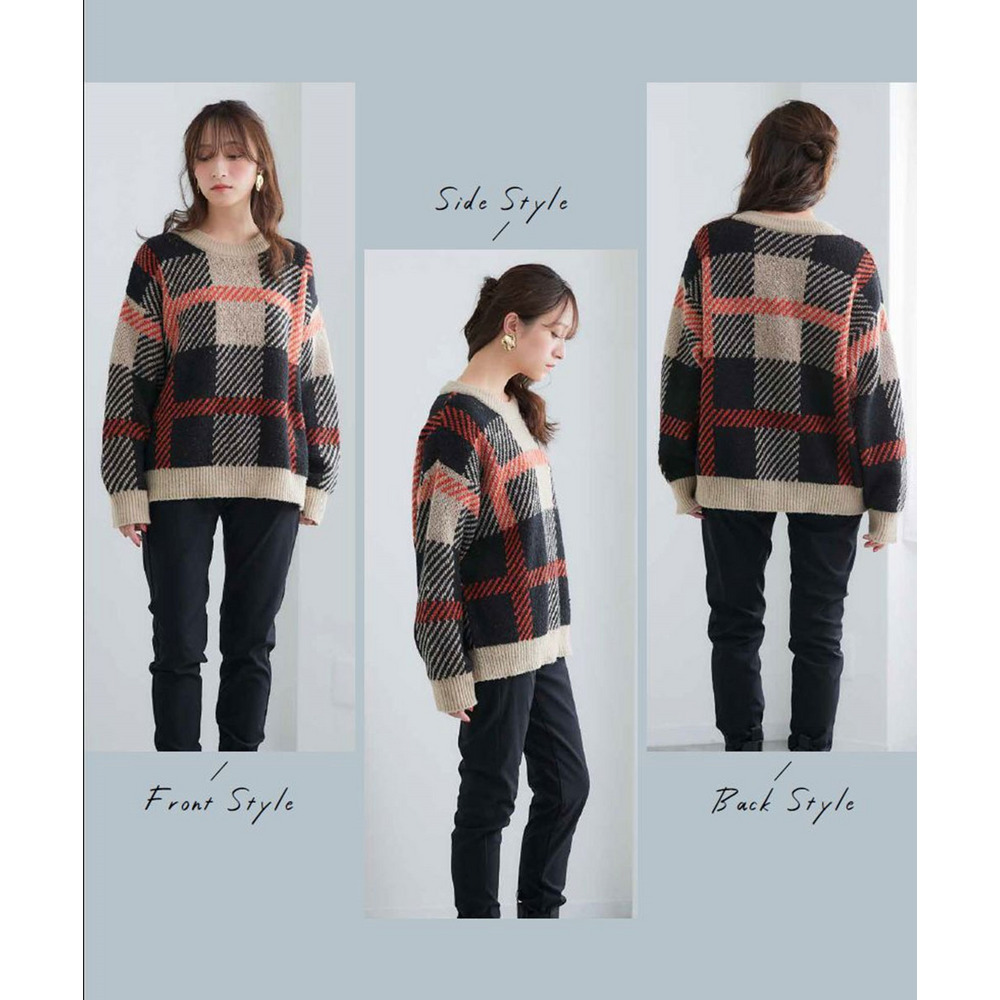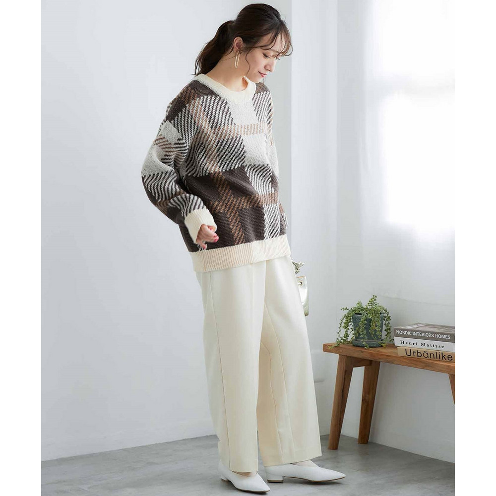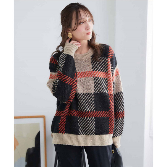 さりげなく映える大人の配色ニット定番のチェックには落ち着いたモカ系を新色追加!