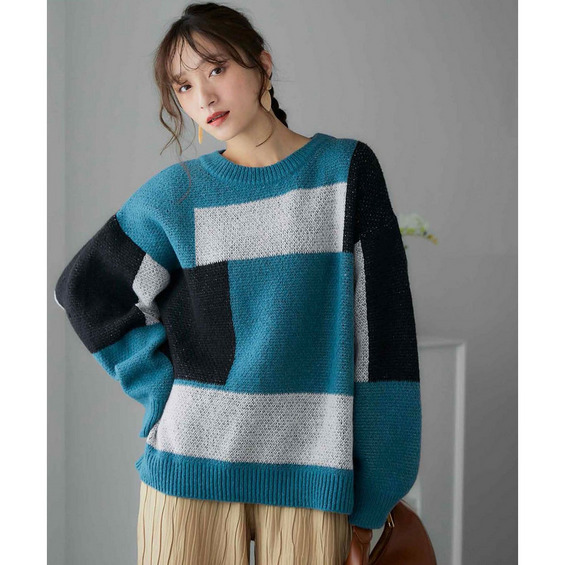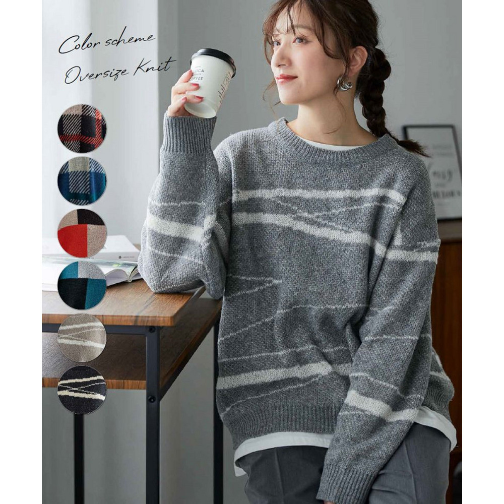 人気の配色ジャガードオーバーサイズニットに新柄登場!