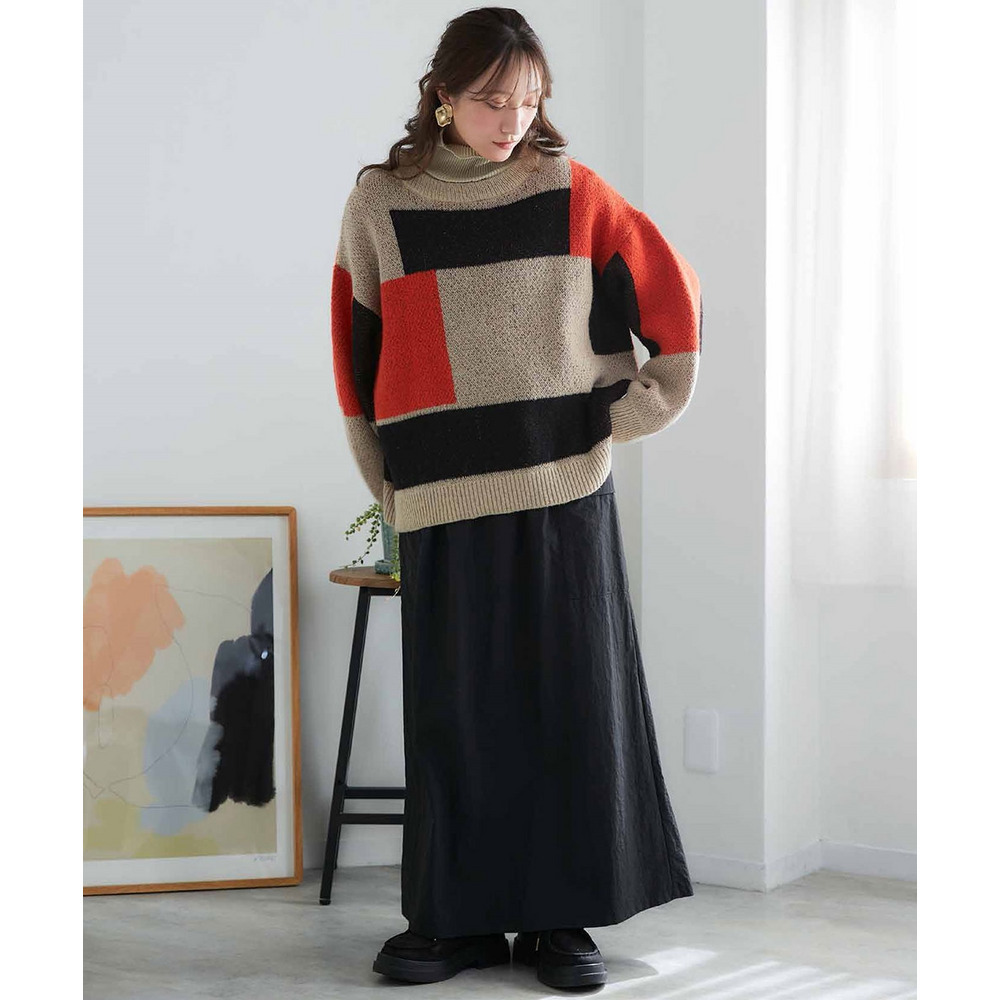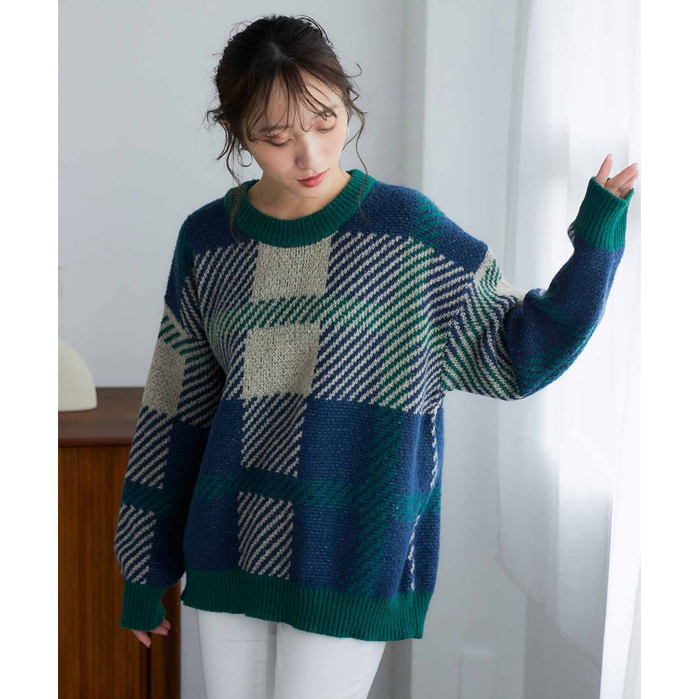 配色ジャガードオーバーサイズニット 大きいサイズ