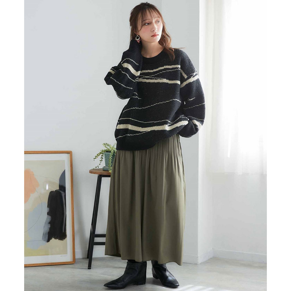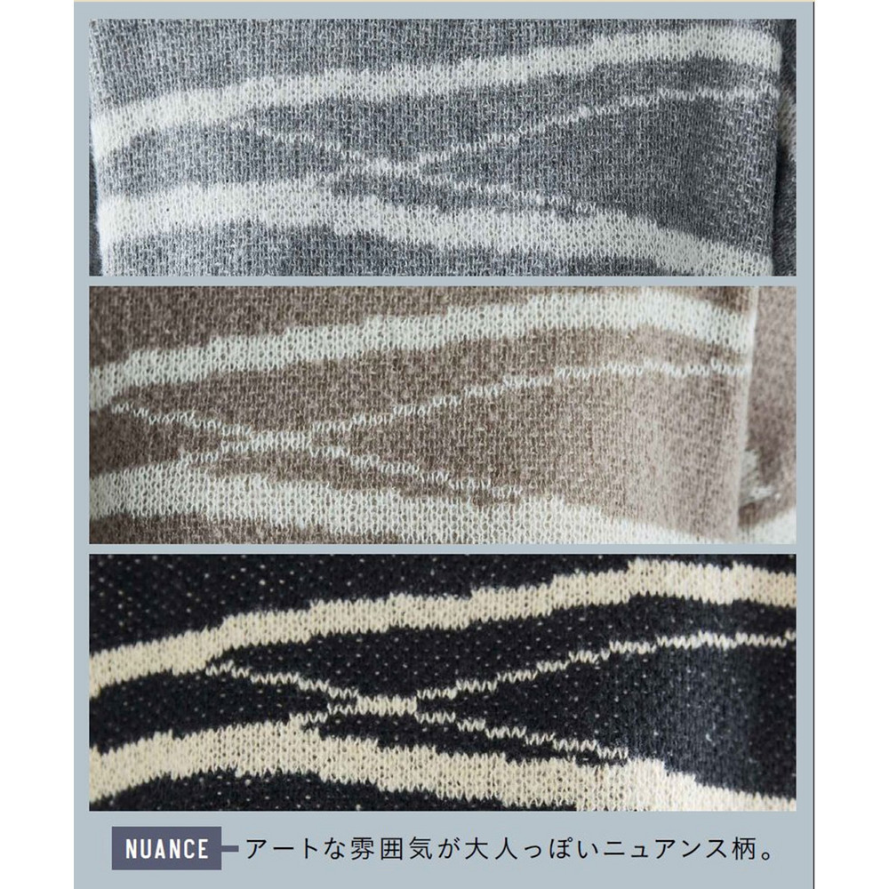落ち着いた大人っぽいニュアンス柄が着映えするのでどんなボトムにも1枚着るだけでトレンド見えするので◎
