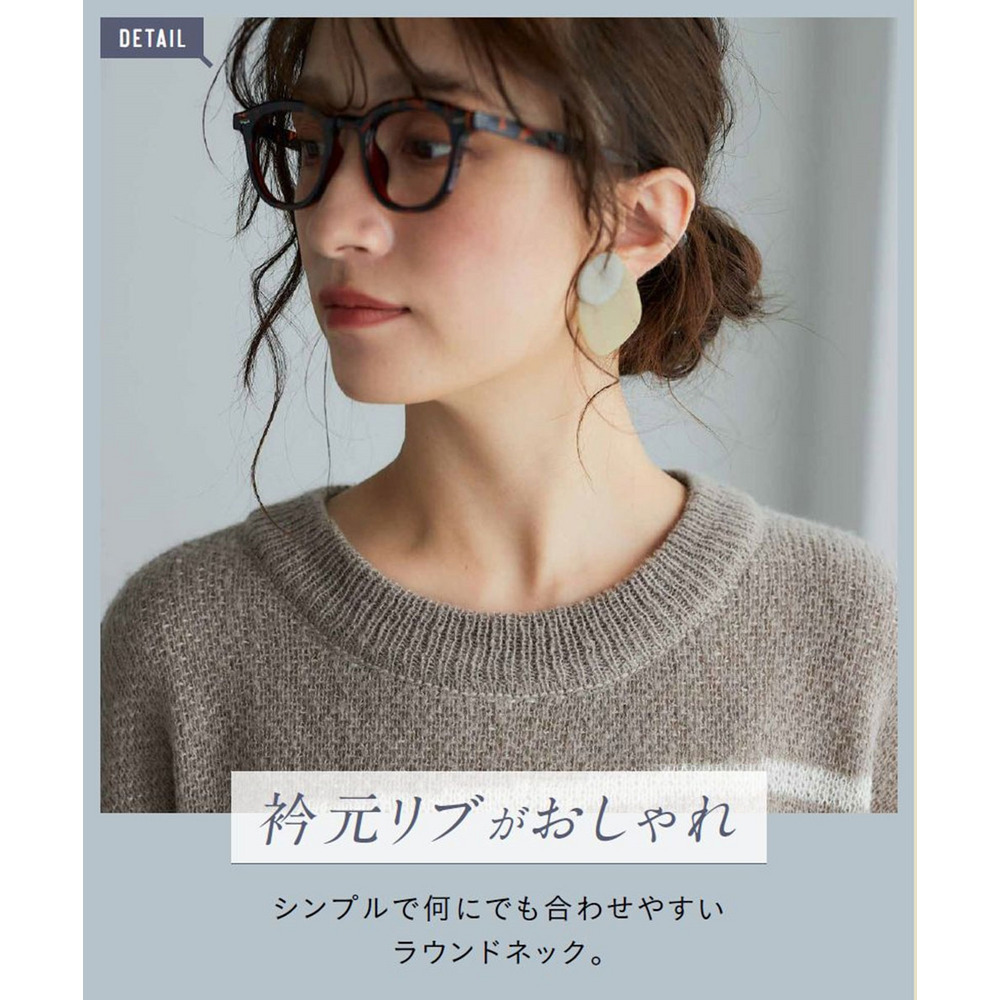 太目のリブで切り替えたクルーネックが顔まわりをすっきり見せてくれます