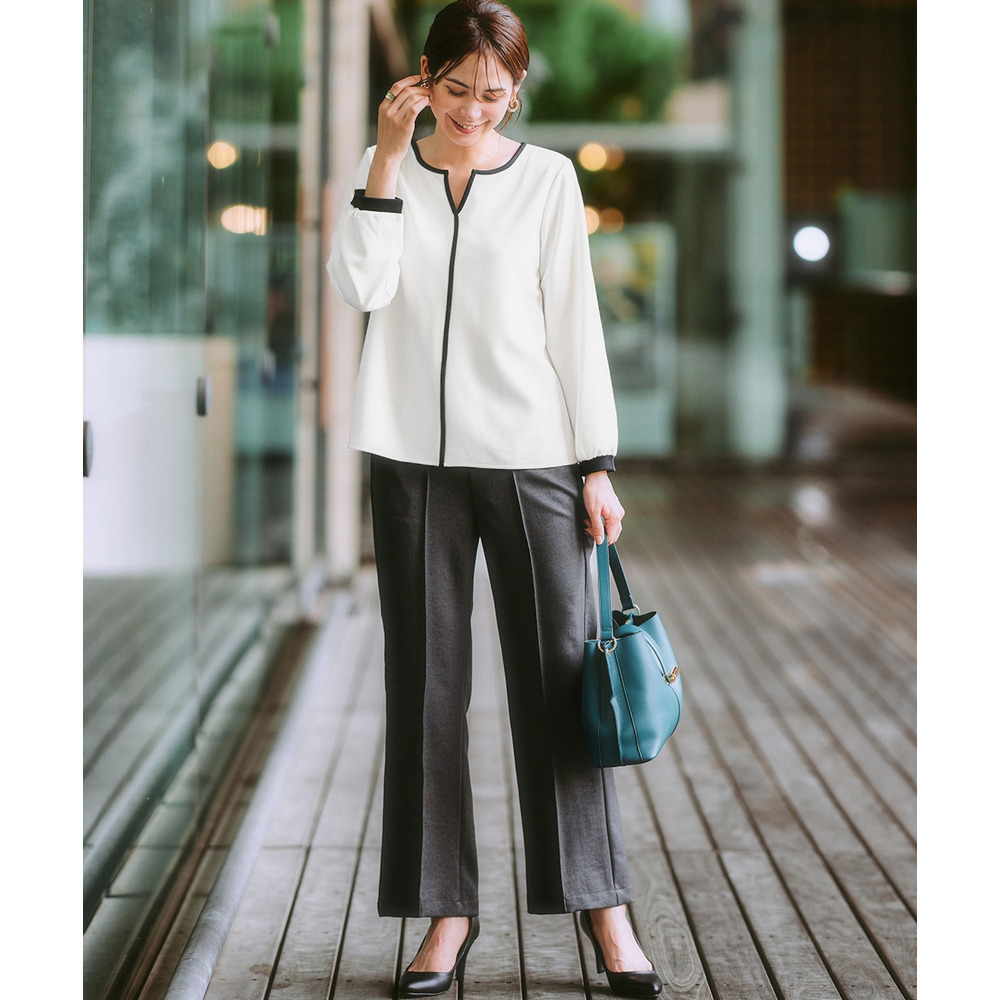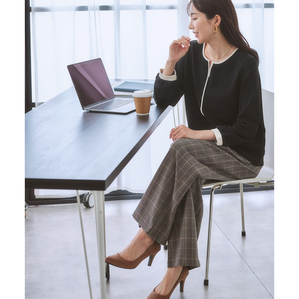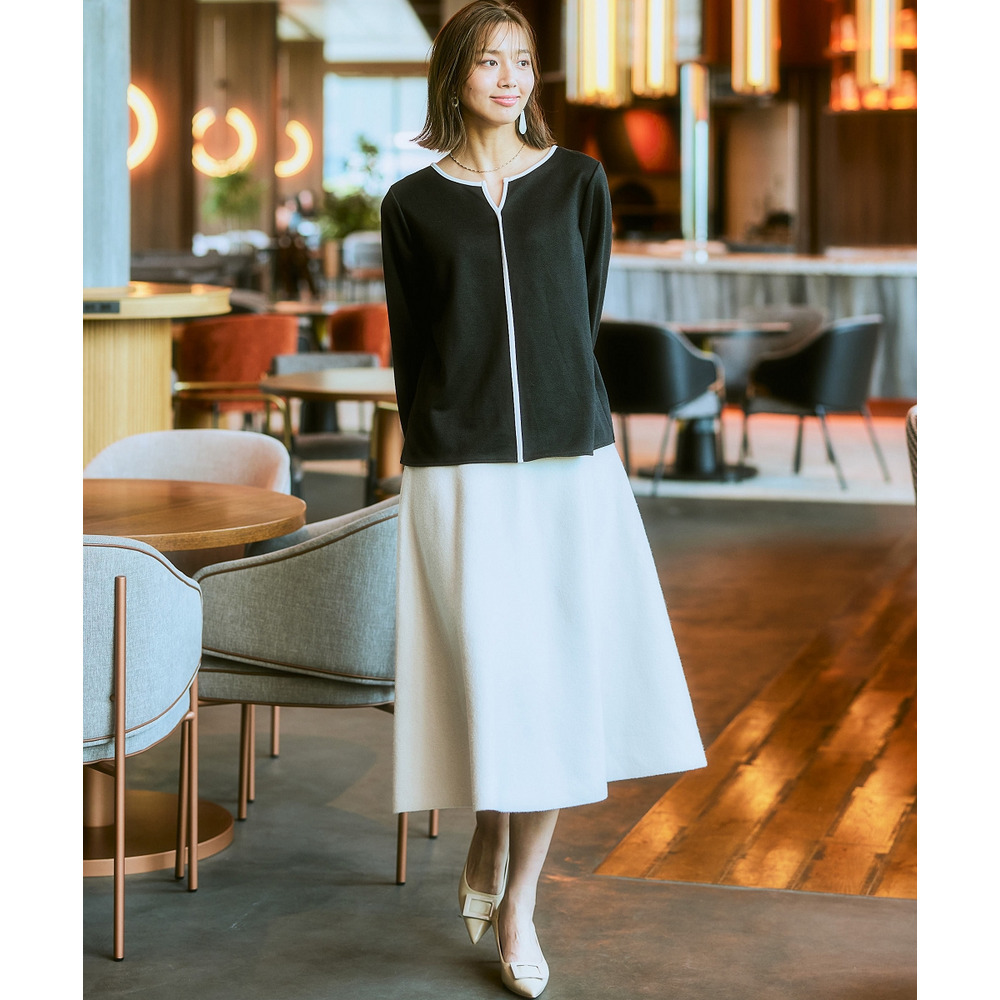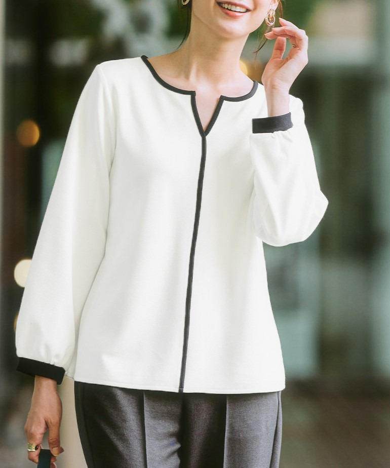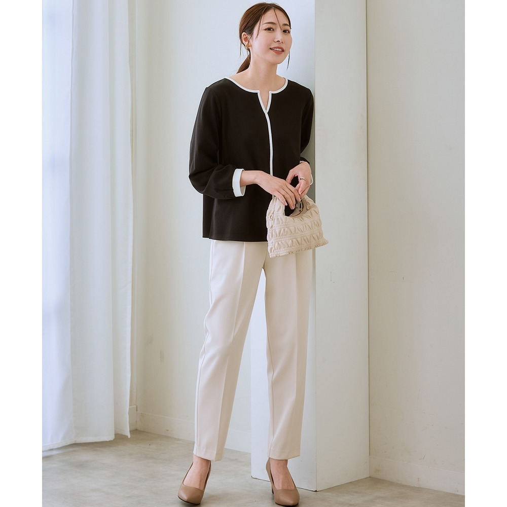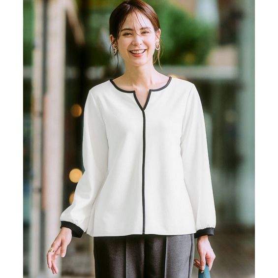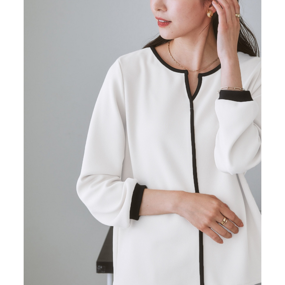 ・着こなしのアクセントになる配色使い・キーネックでスッキリ