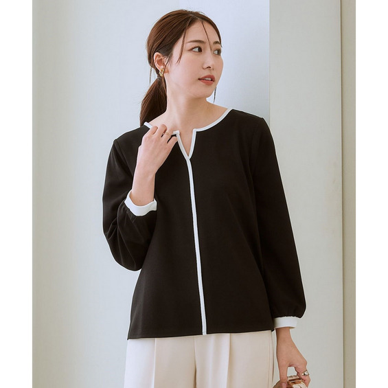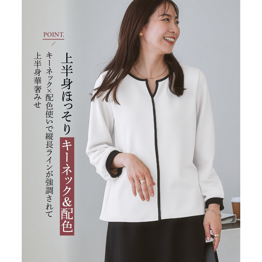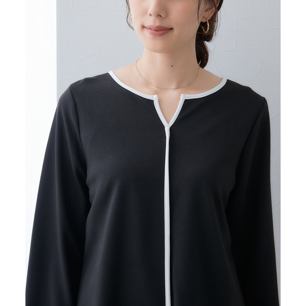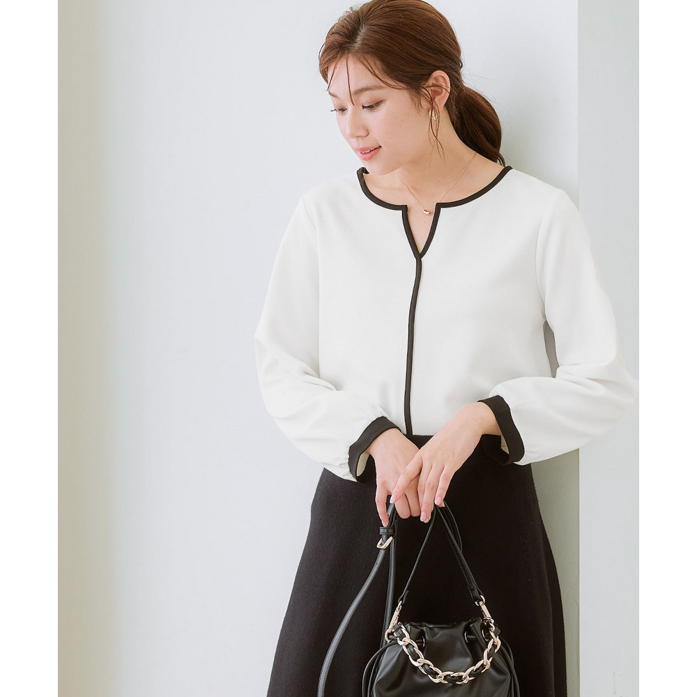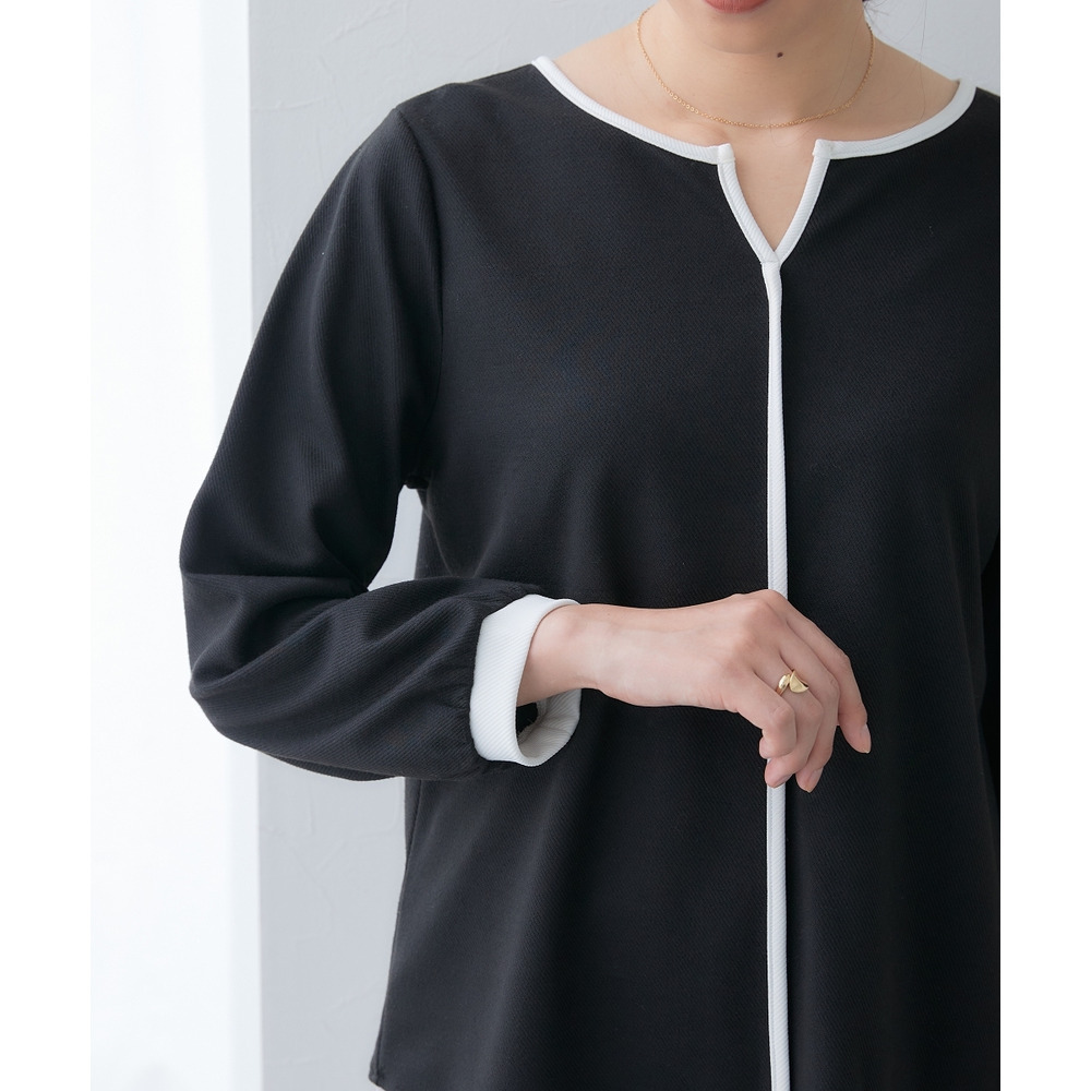 【裏側起毛であったか】配色使いキーネックトップス 大きいサイズ