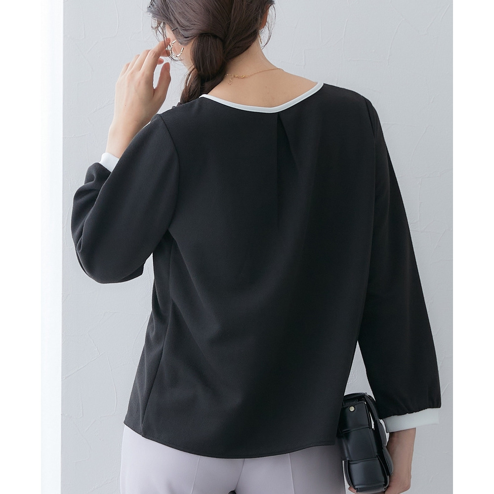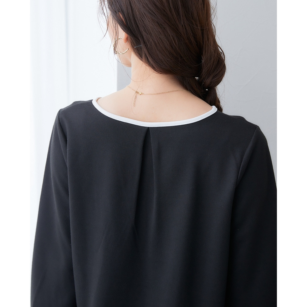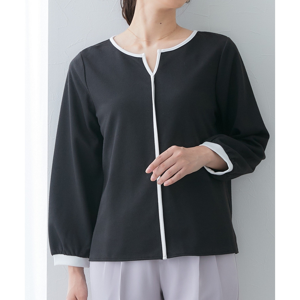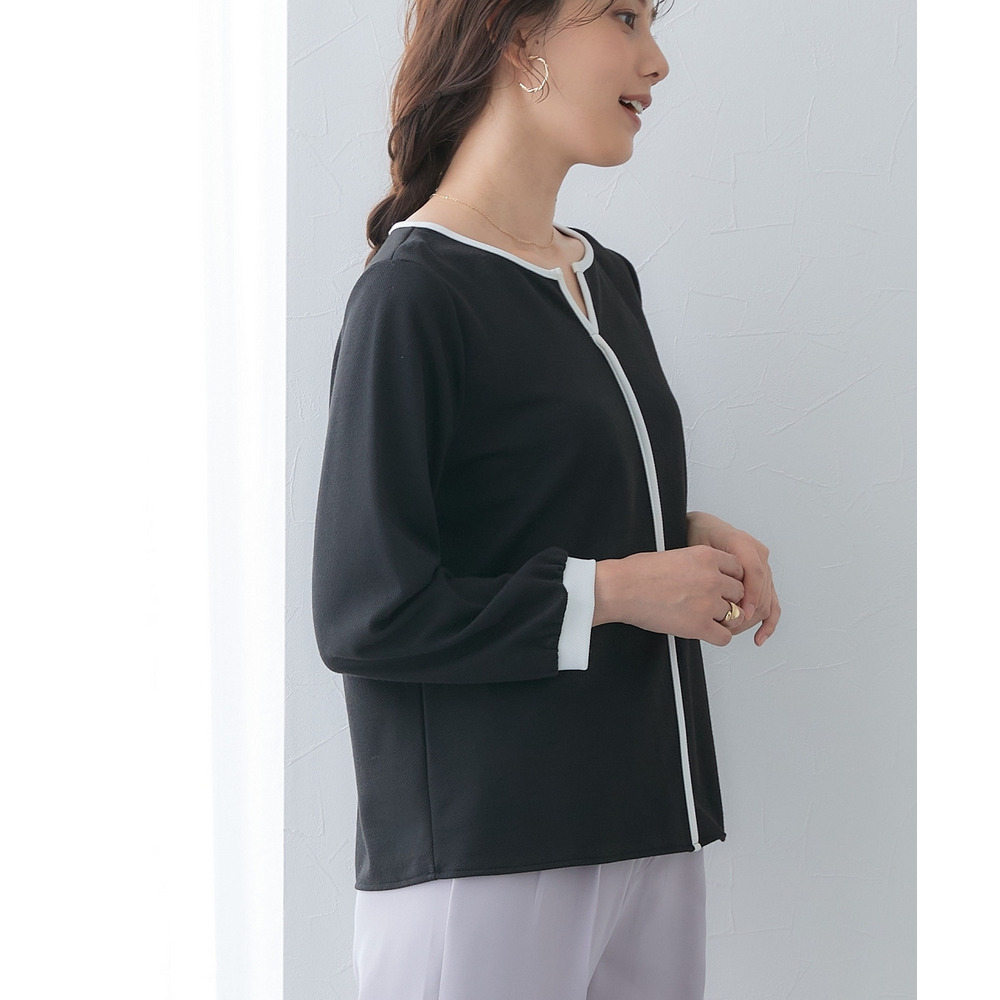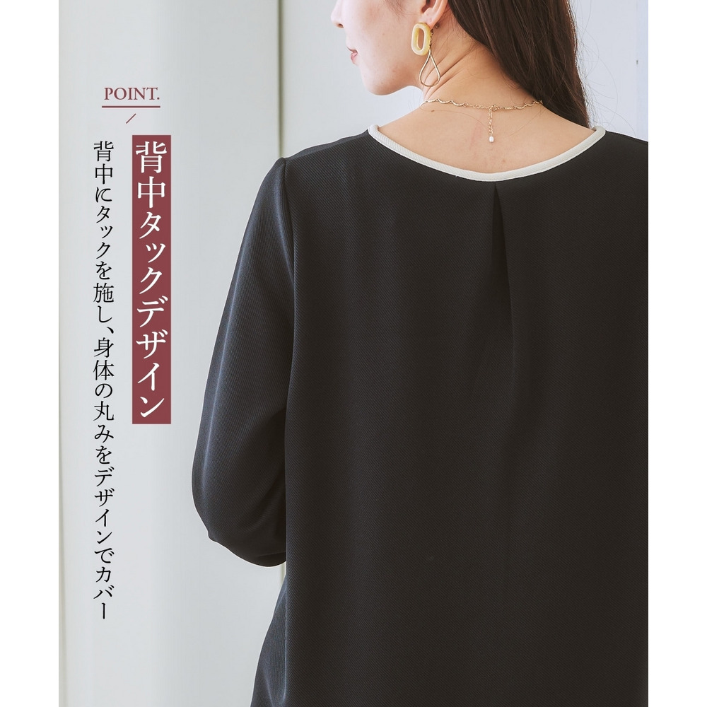 【裏側起毛であったか】配色使いキーネックトップス 大きいサイズ