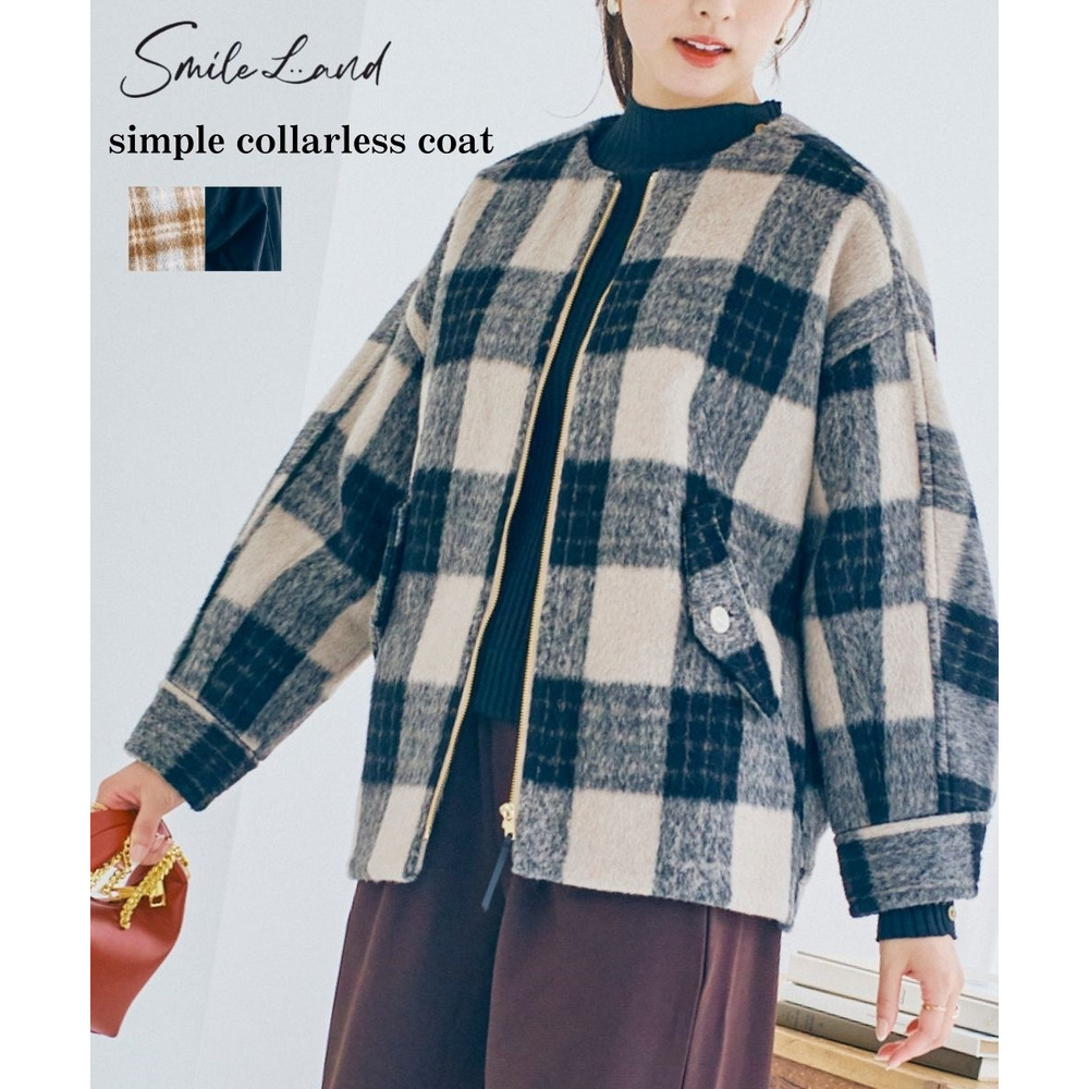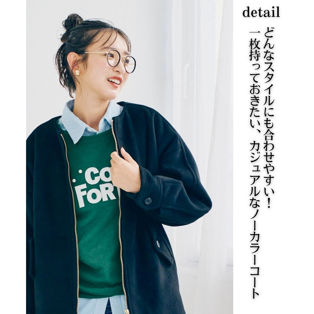 コーディネートの幅を広げるシンプルなノーカラーコート。