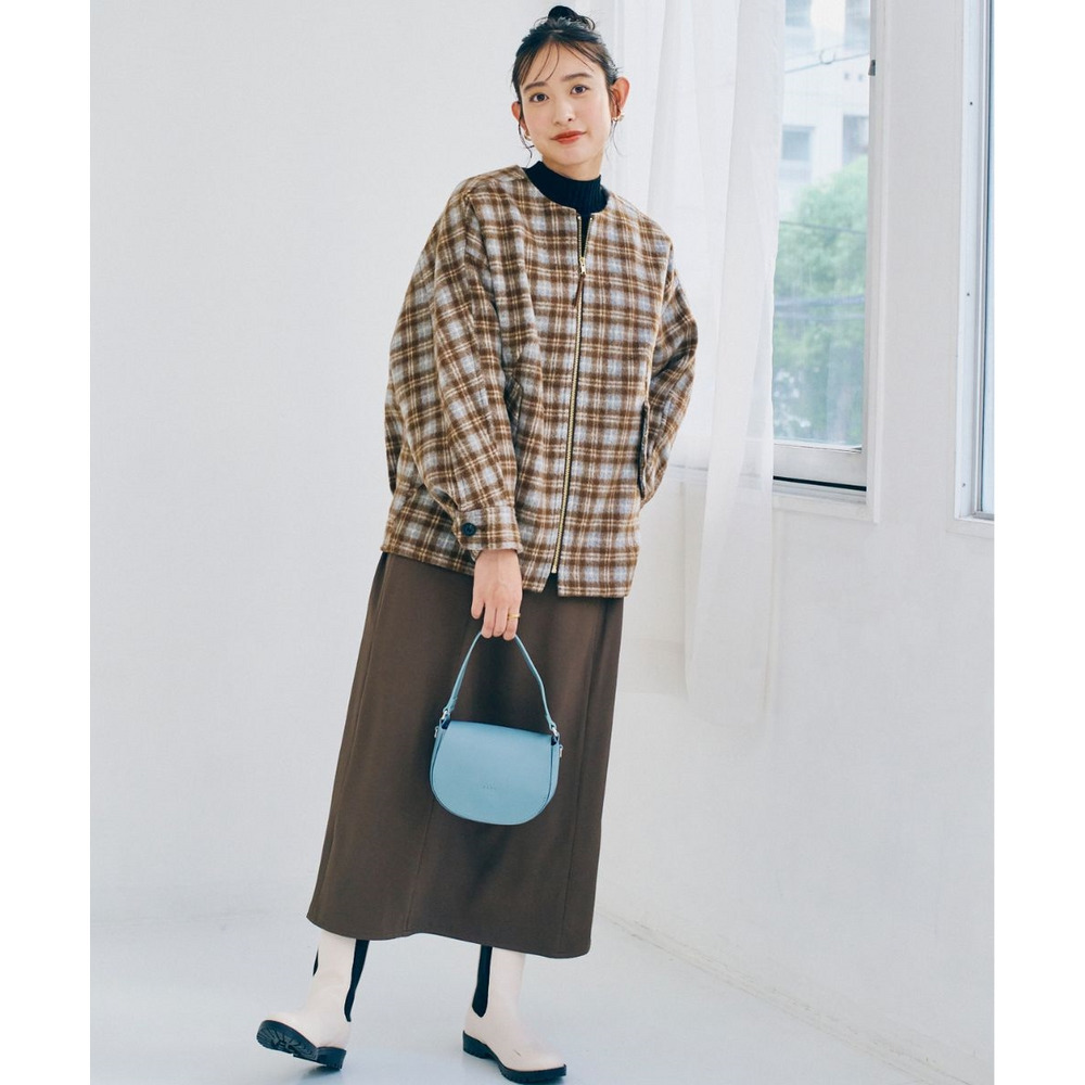 可愛いチェックは大人っぽい無地スカートとコーデしてクールな印象に。