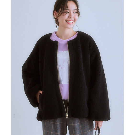 ゆとりのあるサイジングや、ボアのふんわりとした素材感が見た目にも暖かく、華やかな印象に導きます。