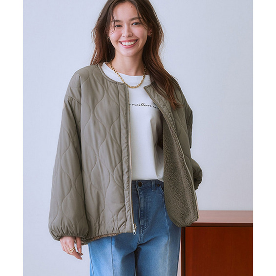 もこもこのボア素材×中綿キルティング面、どちらの面も、着るだけでワンランク上の着こなしを叶えてくれる本格アウターです。