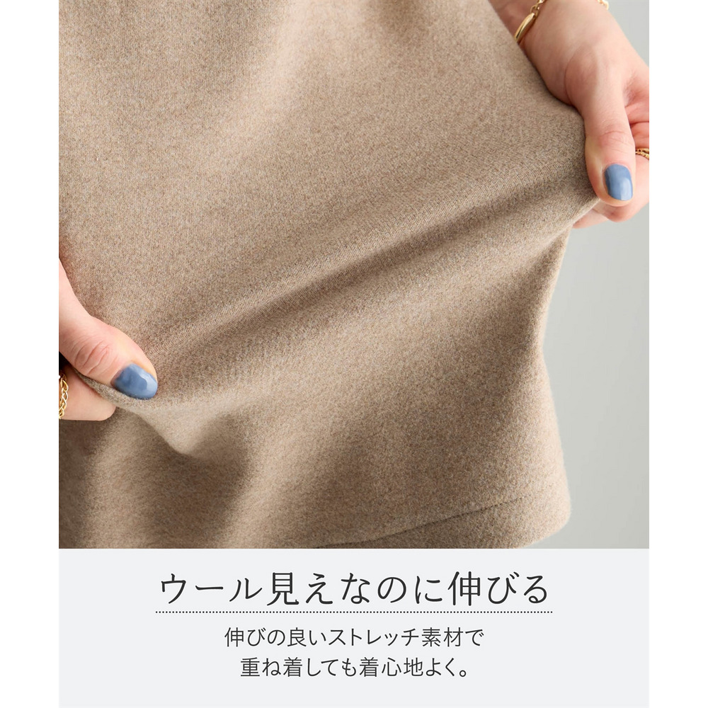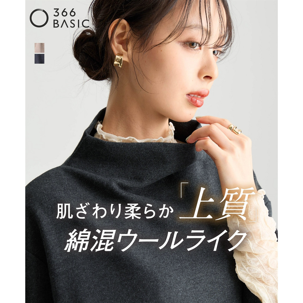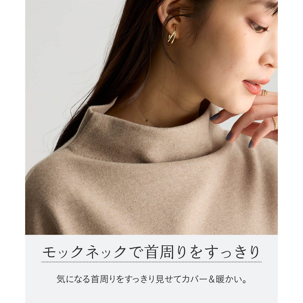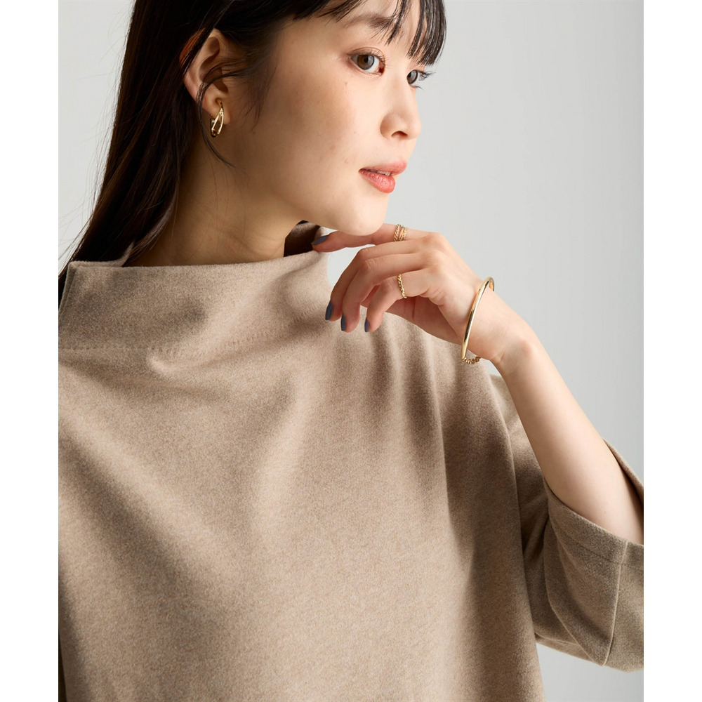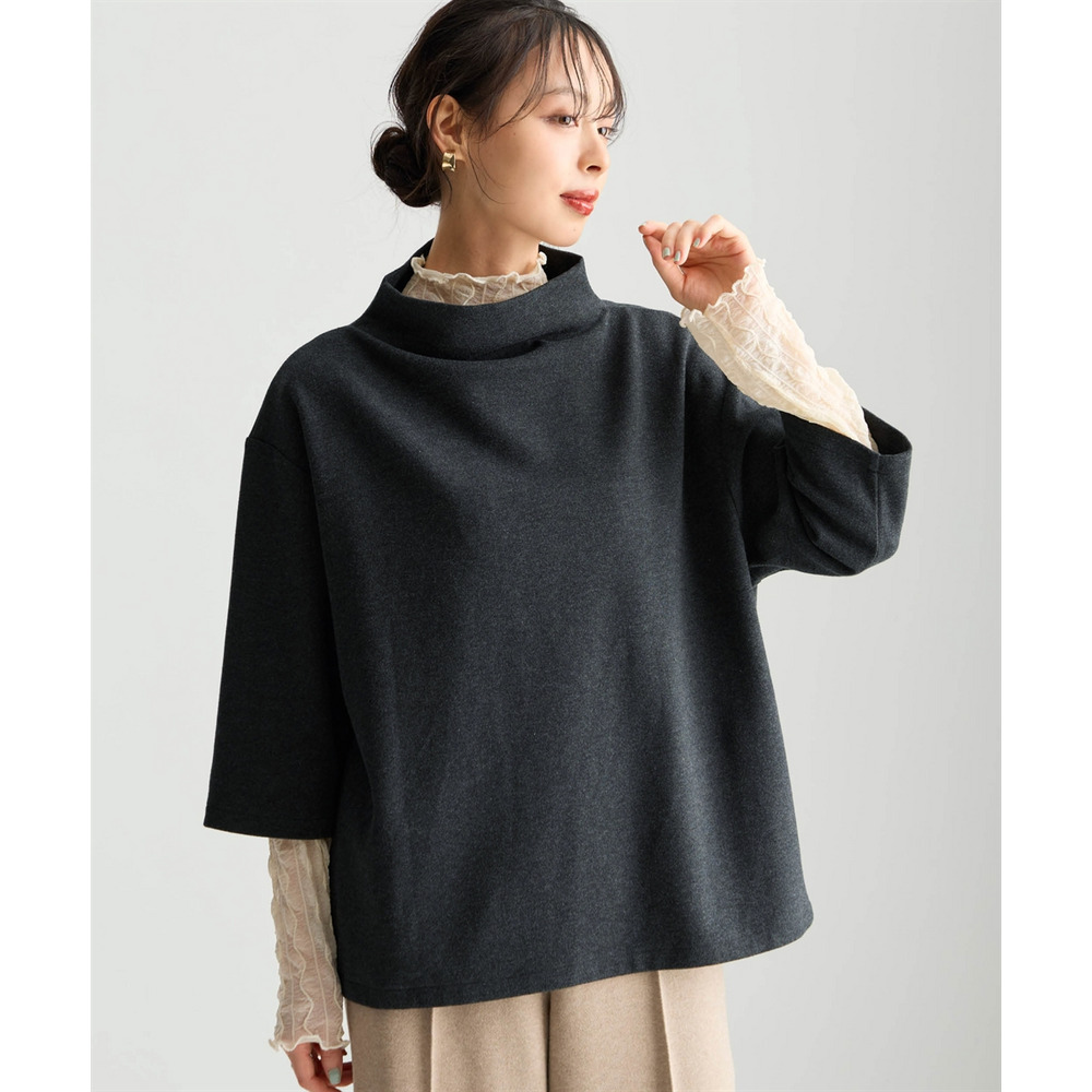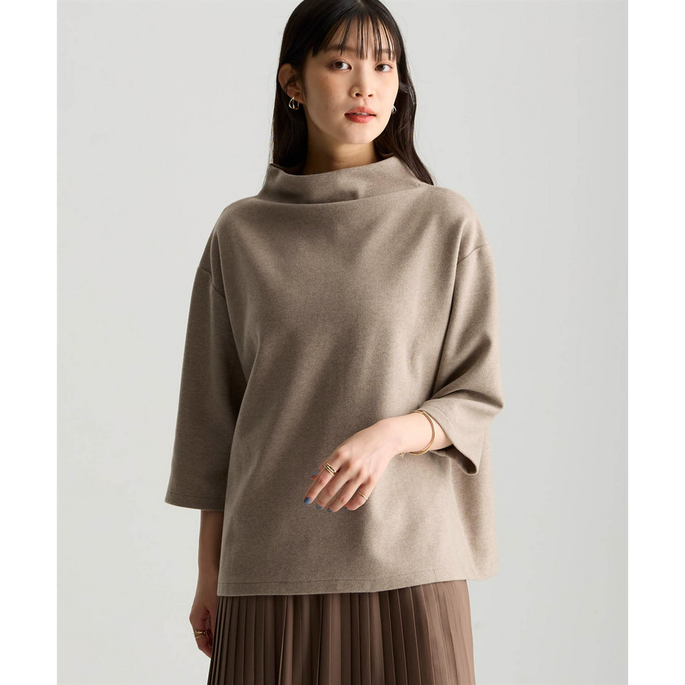 洗濯機で洗える綿混ウール見えカットソー7分袖やわらかモックネップルオーバー 大きいサイズ
