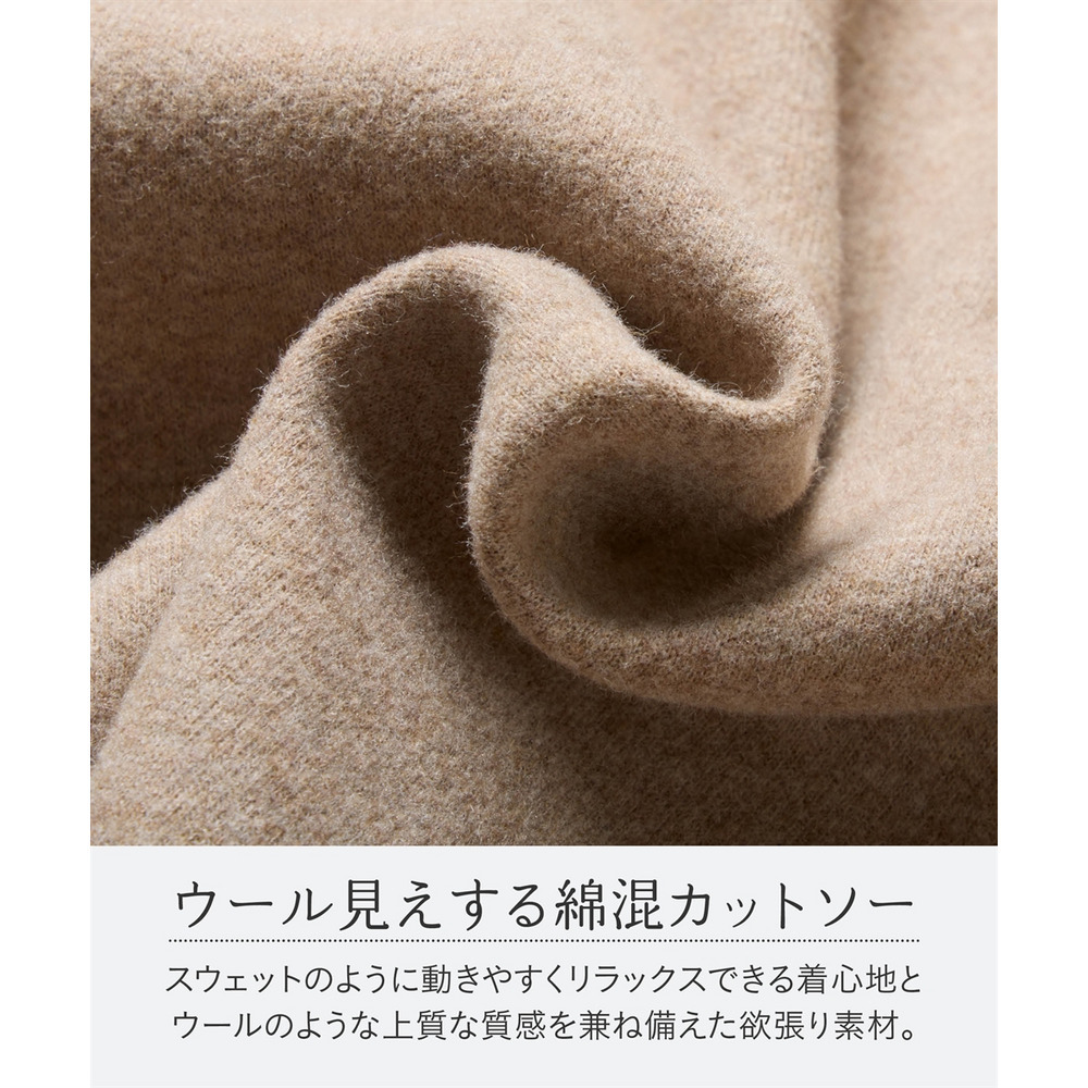 | 素材 | 品質=綿64%・ポリエステル36% 透け感:なし 伸縮性:あり 生地の厚み:普通 光沢感:なし 裏地:なし ポケット:なし 季節:秋・冬向き シルエット:ややゆったり |