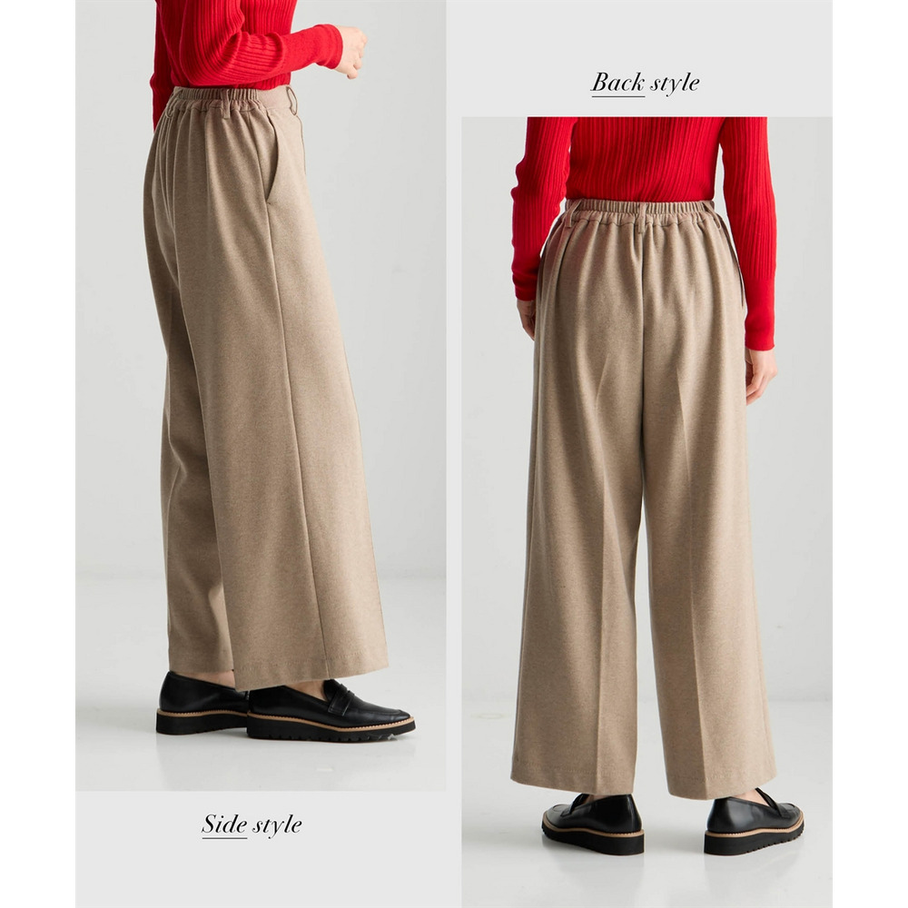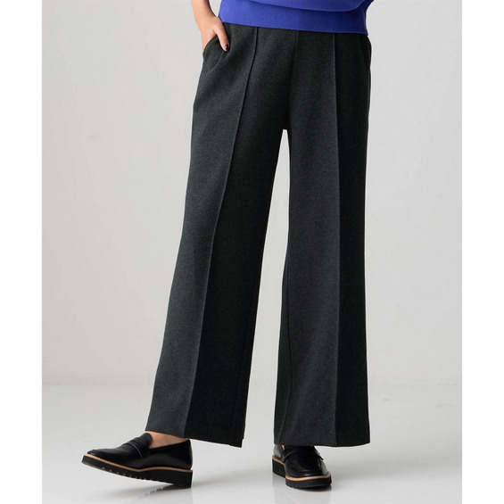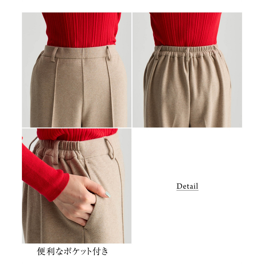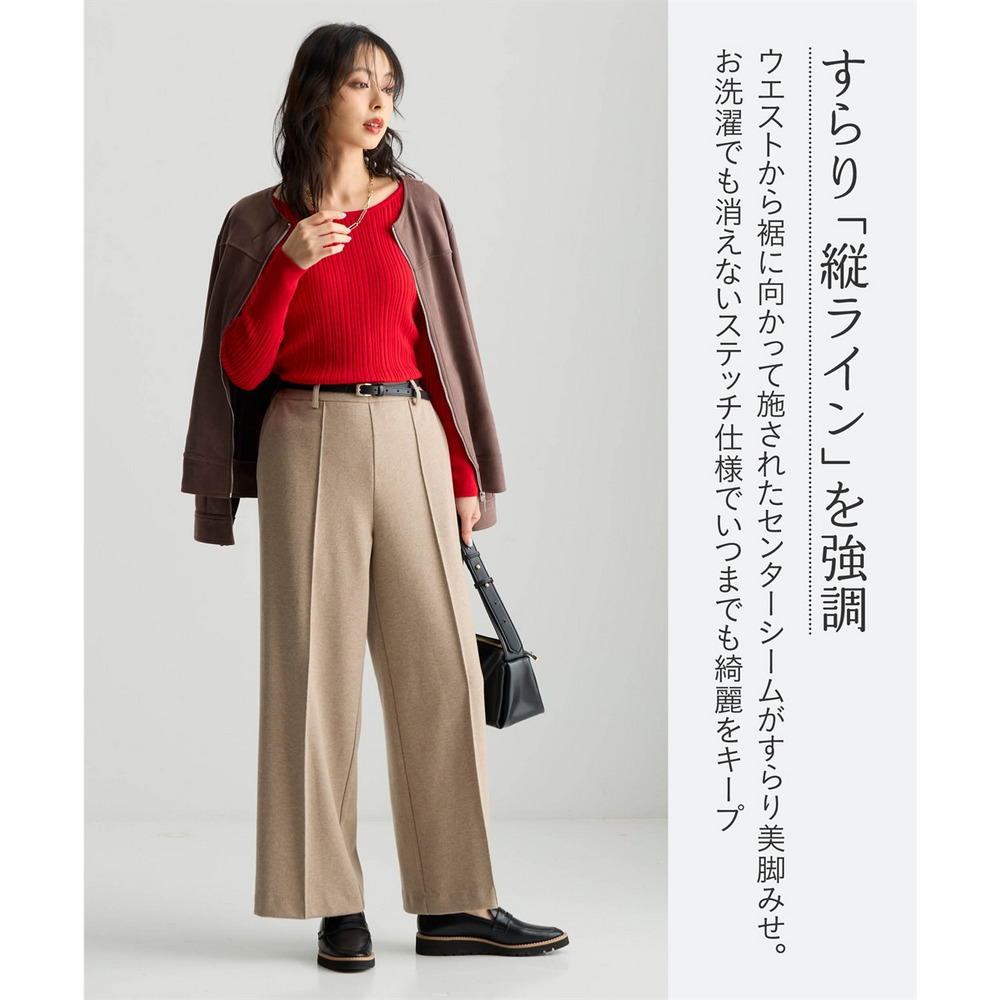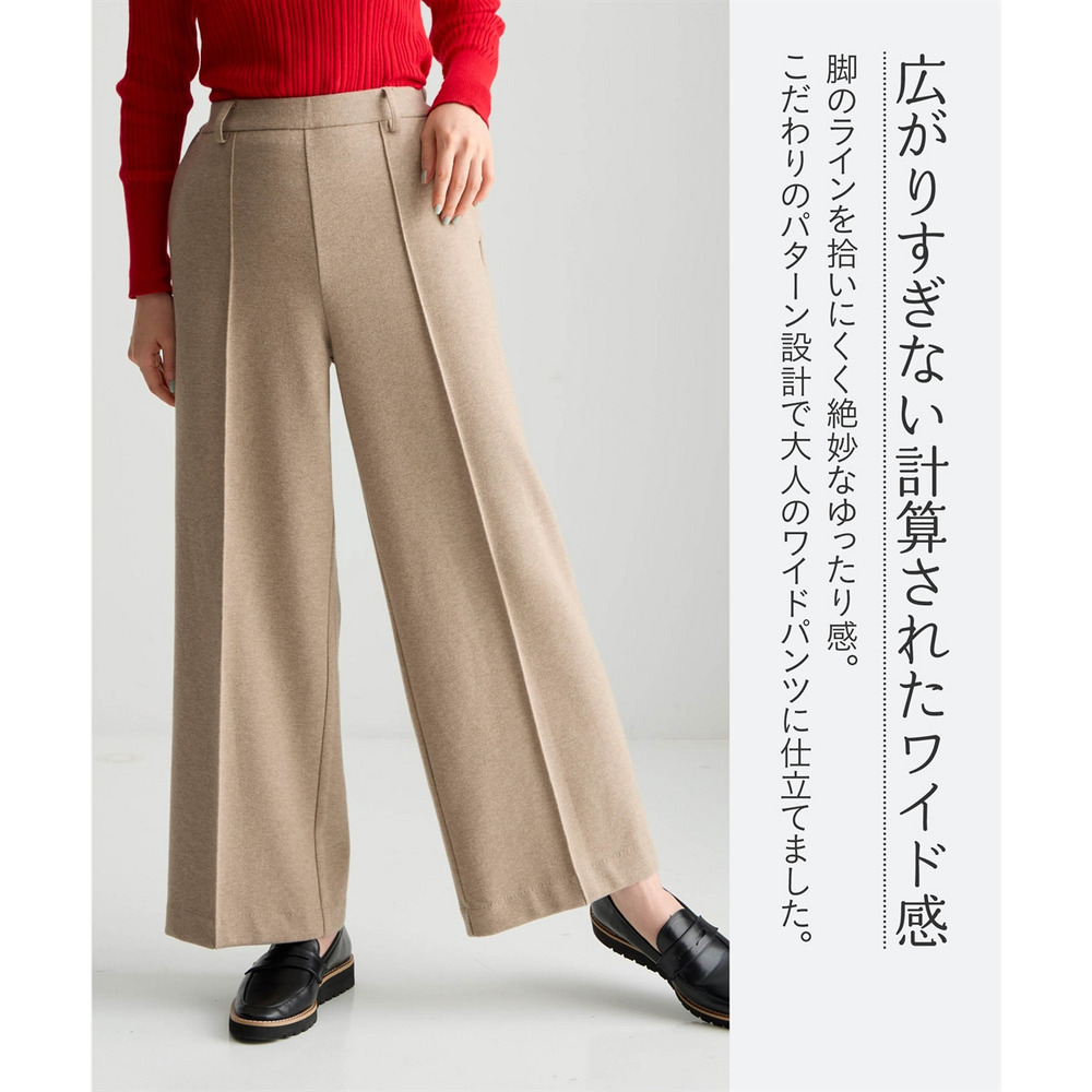 洗濯機で洗える綿混ウール見えカットソーやわらかピンタックマニッシュワイドパンツ 大きいサイズ