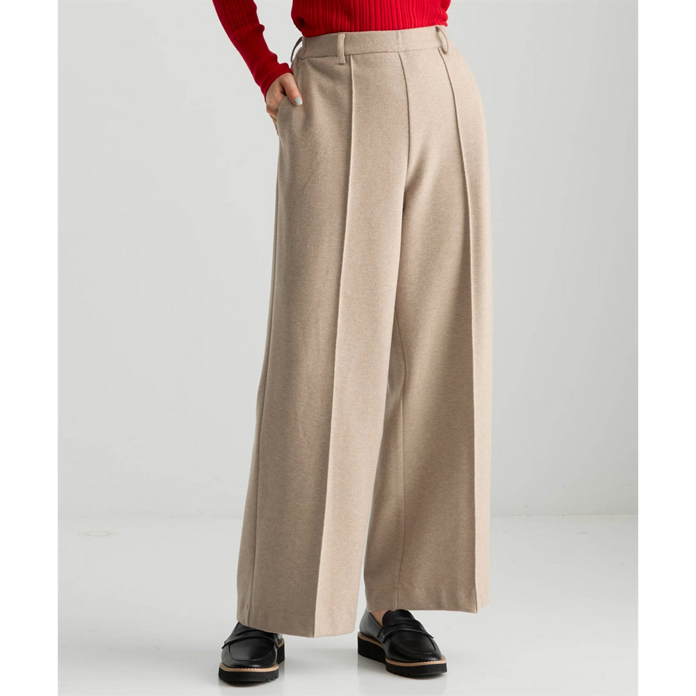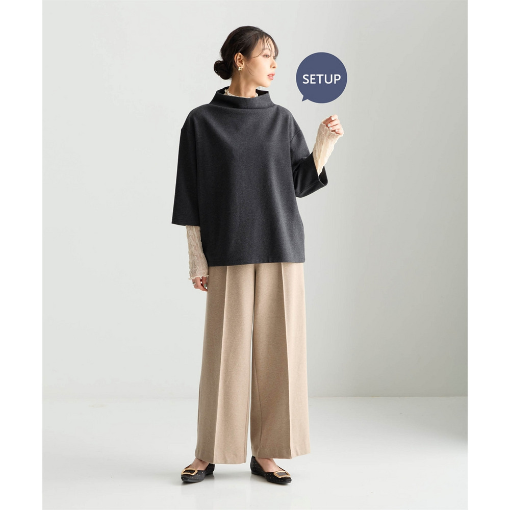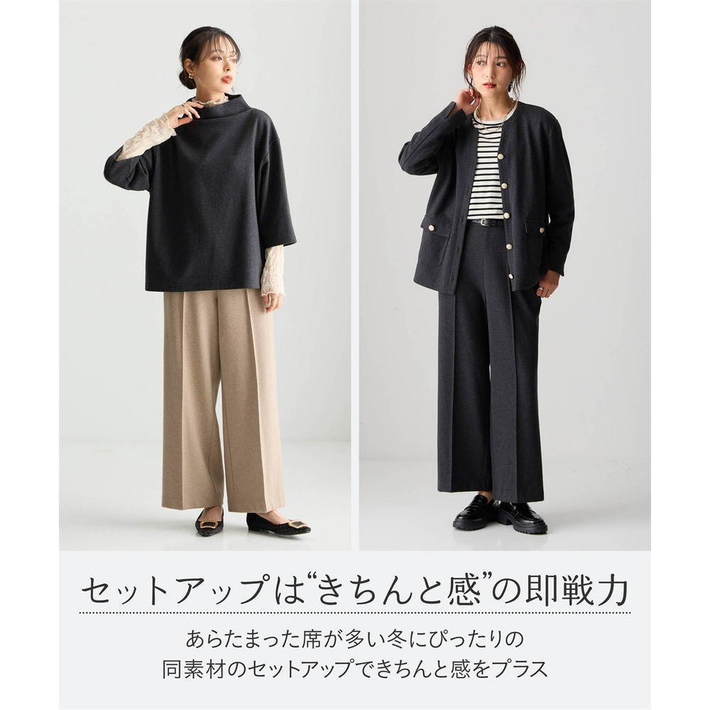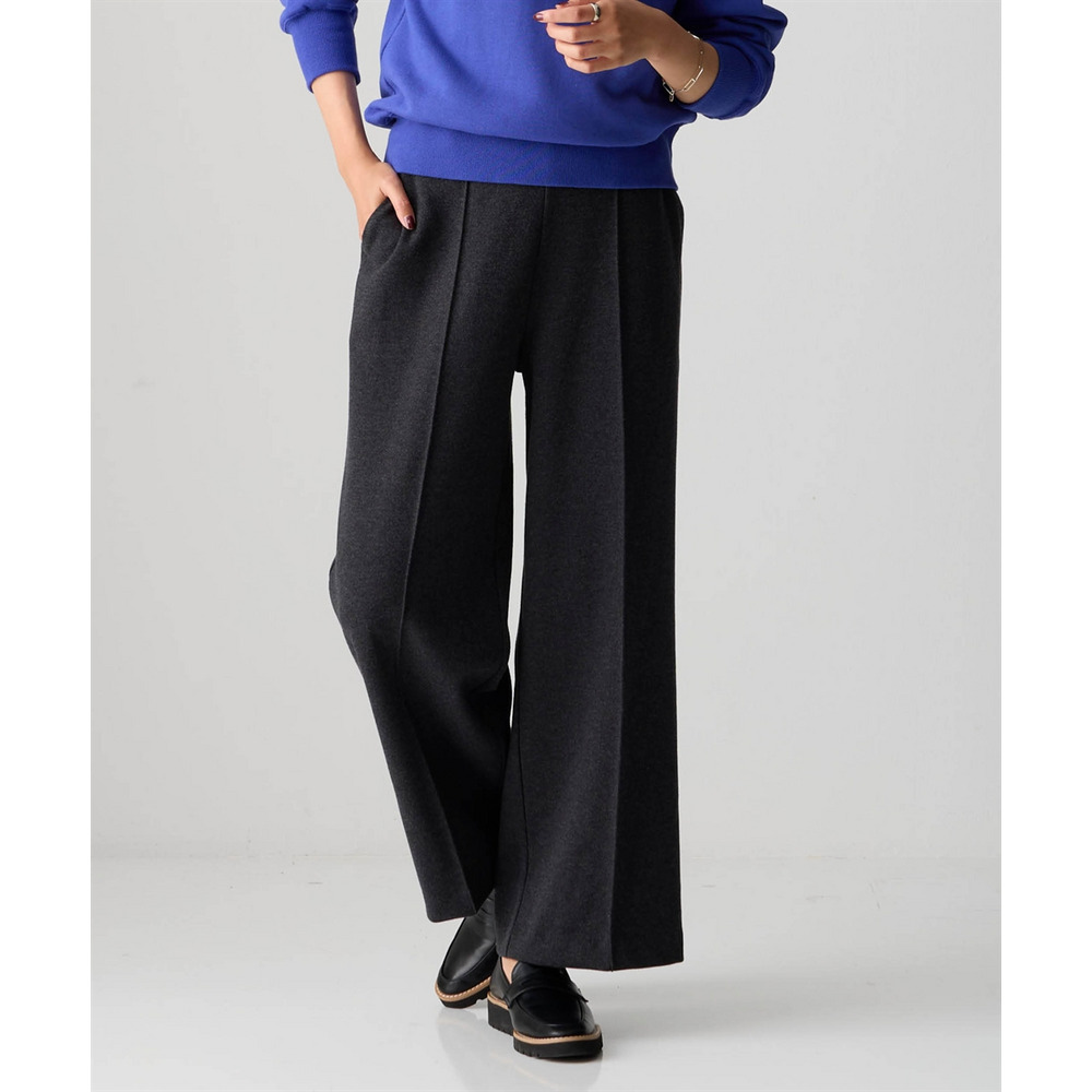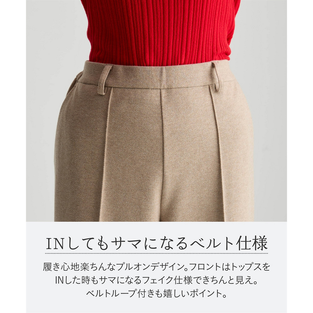 洗濯機で洗える綿混ウール見えカットソーやわらかピンタックマニッシュワイドパンツ 大きいサイズ