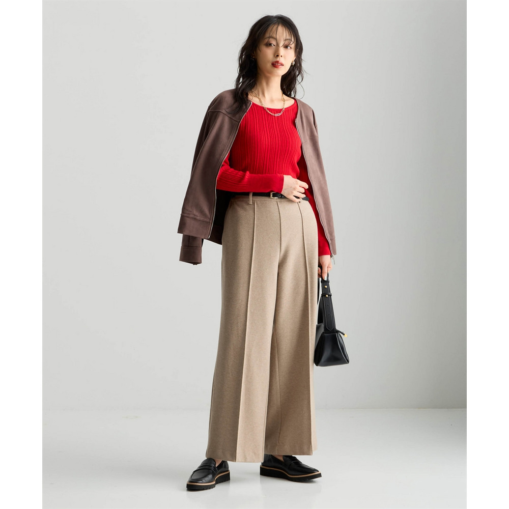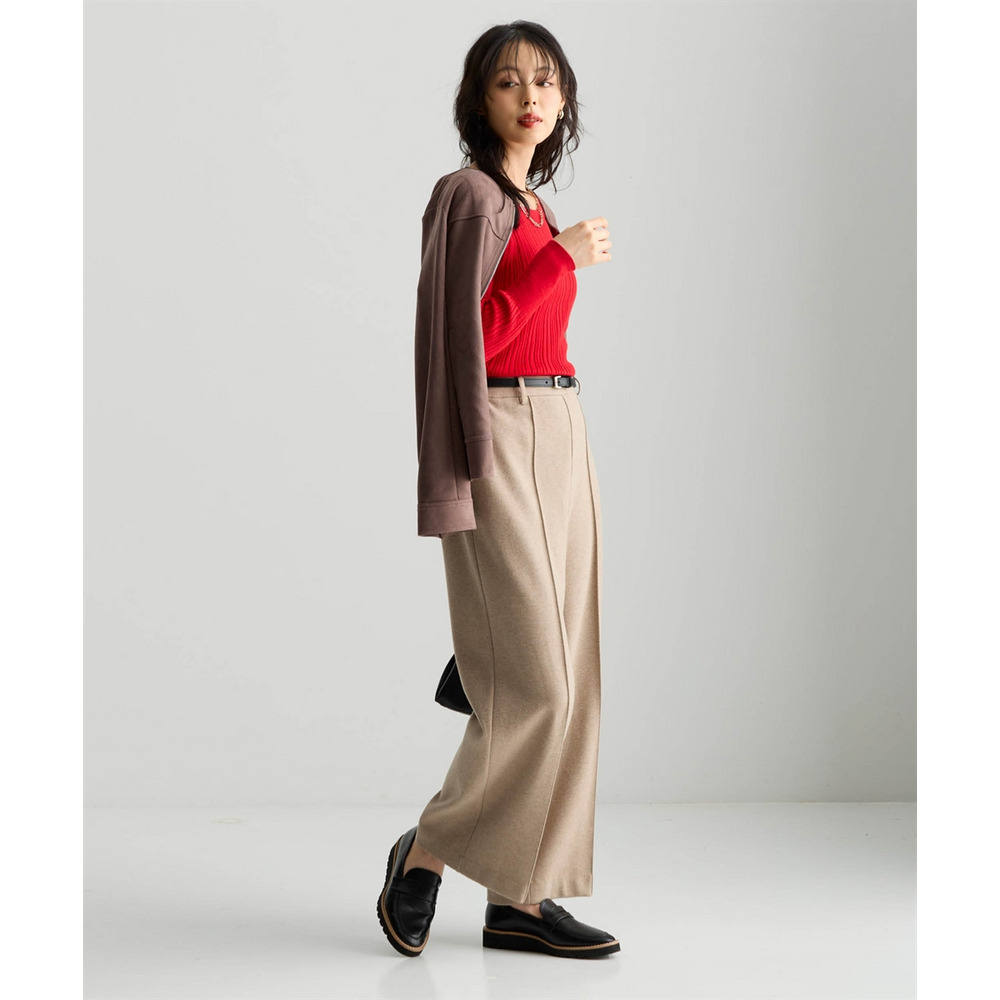 シルエットは、脚のラインを拾いすぎないほどよいゆとり感を持たせたストレートワイド。