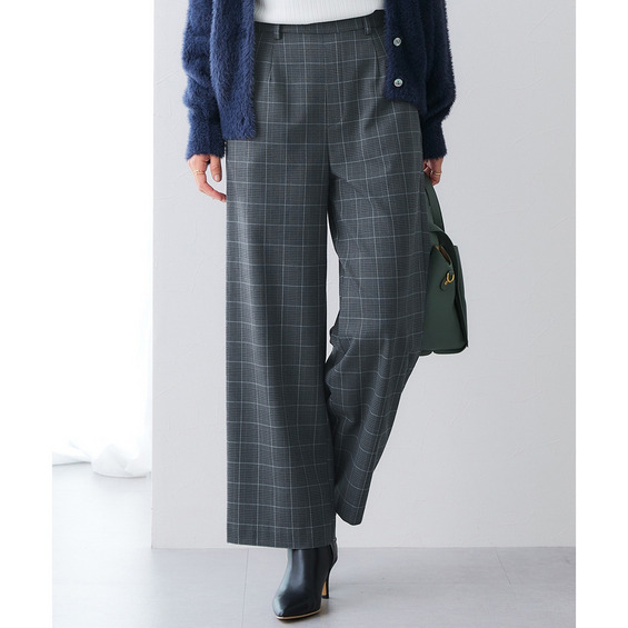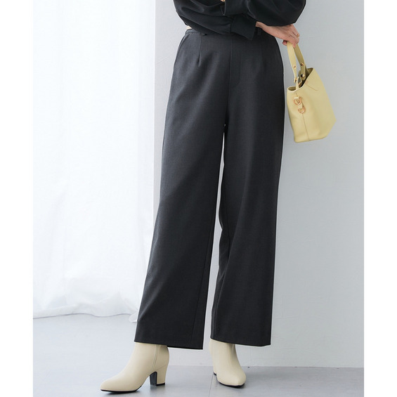 【あったか裏起毛】ウール調ストレッチワイドパンツ(しわになりにくい・保温性) 大きいサイズ