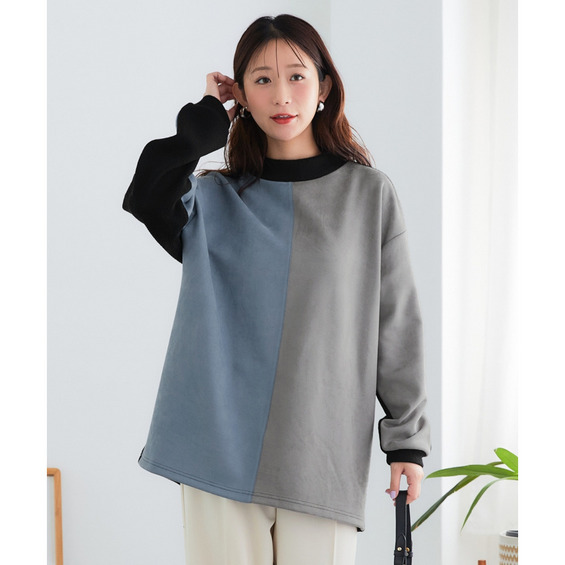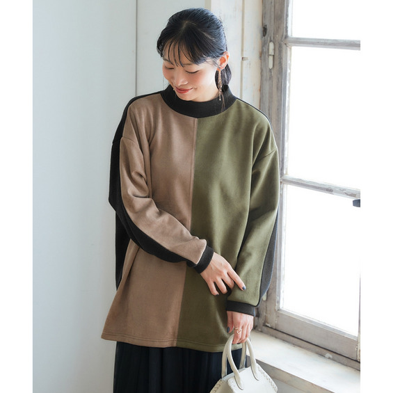 スエード配色モックネックドルマンプルオーバー 大きいサイズ