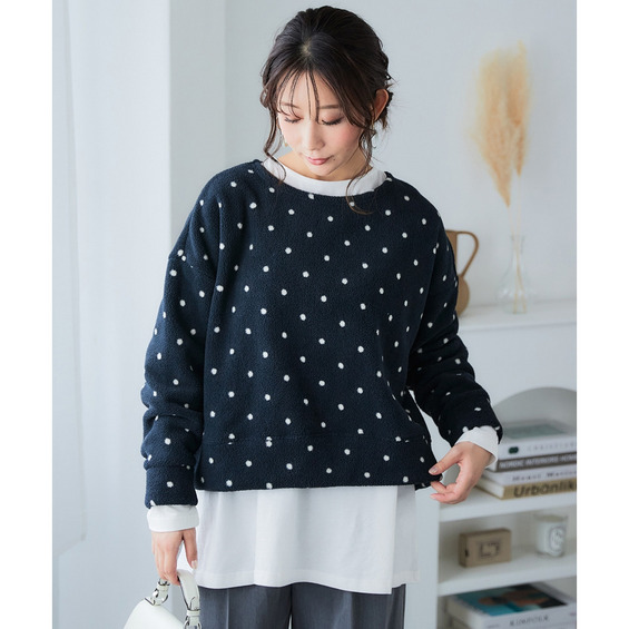 暖かくて着心地の良いドットボアフリースワイドトップスは、毎日のカジュアルスタイルに大活躍。