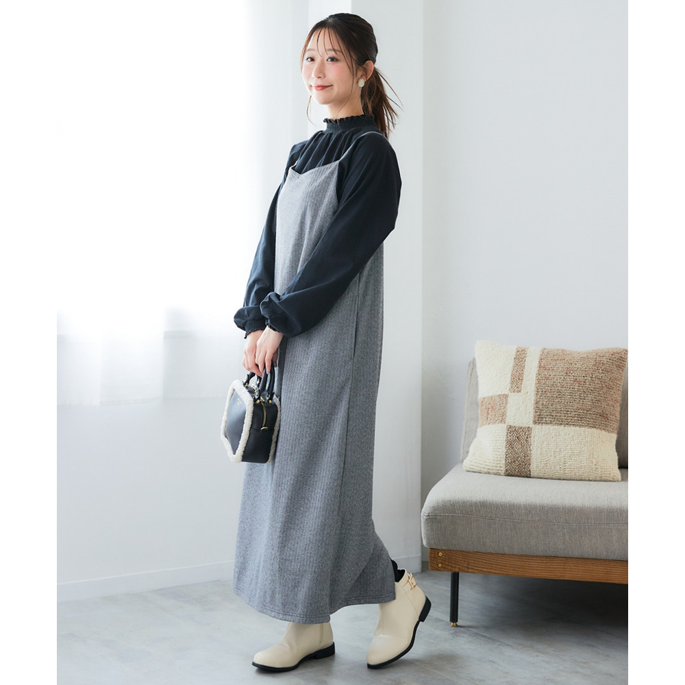カットソージャガード後ギャザーキャミワンピース 大きいサイズ