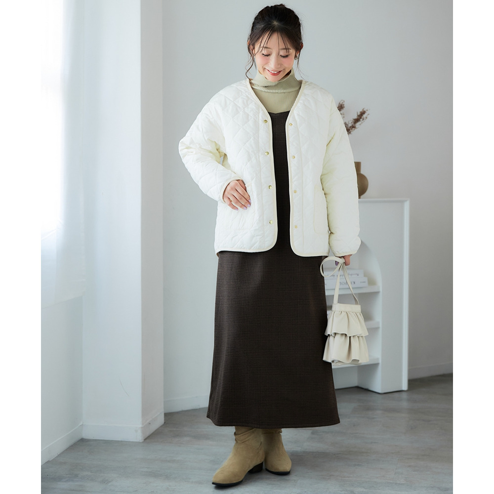 カーディガンやジャケットを羽織れば、オフィスにも対応できるきちんと感のある着こなしも可能。