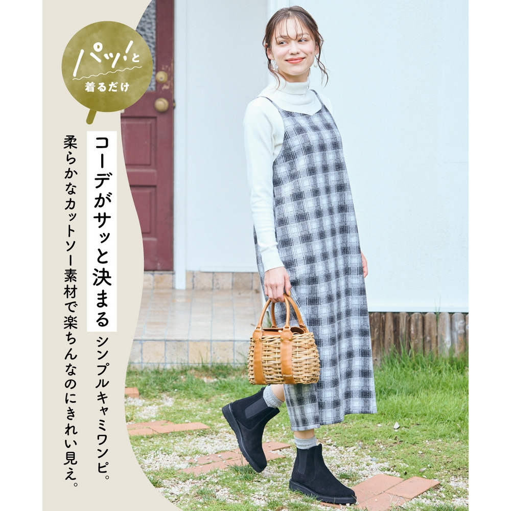 伸び感のあるカットソージャガードキャミワンピースは、気になる体型を優しくカバーしながら、女性らしい華奢見せを叶えます。