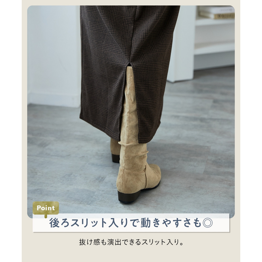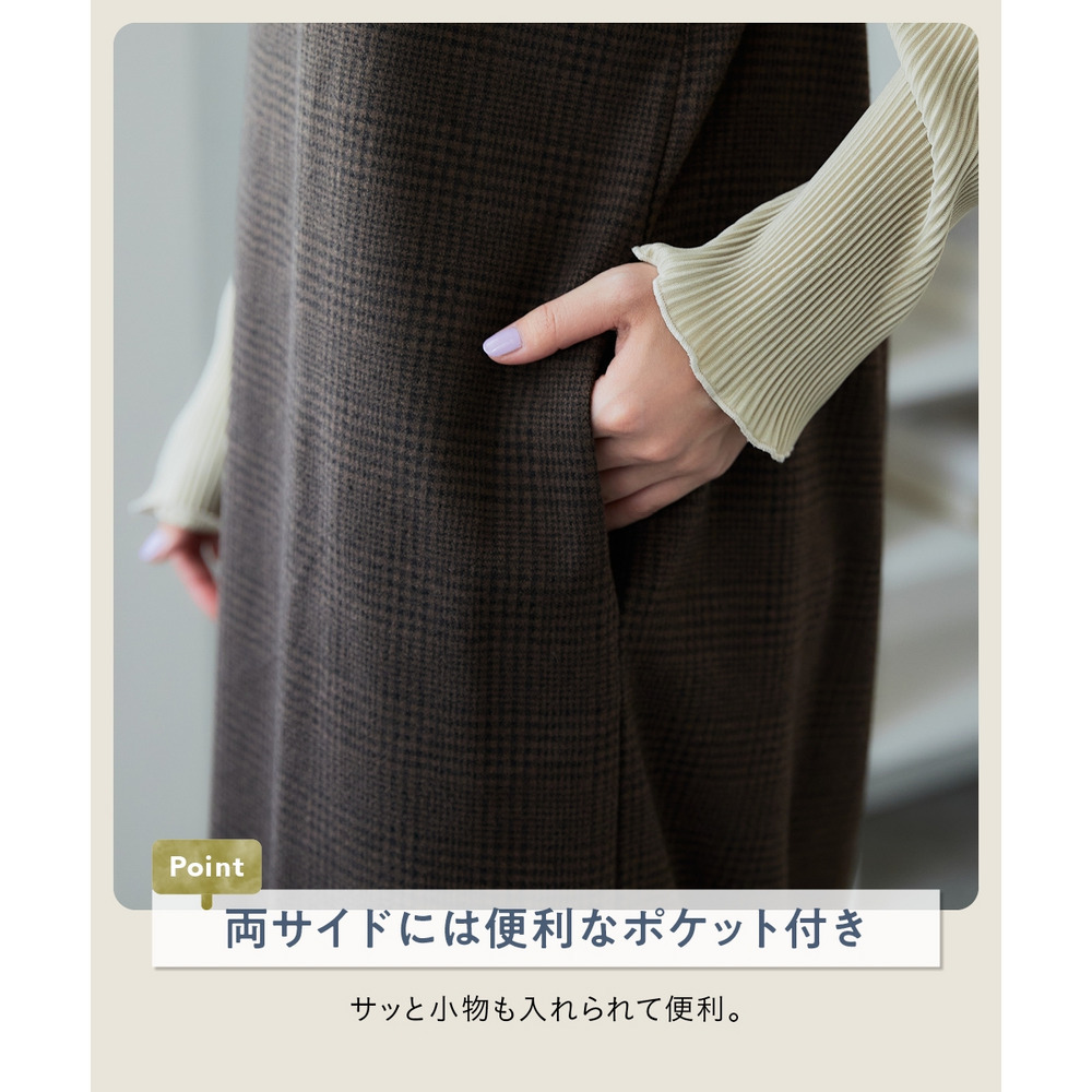 | 素材 | 品質=ポリエステル100% ポケット両脇 後スリット約21cm透け感:透けにくい 伸縮性:あり 生地の厚み:普通 光沢感:なし 裏地:なし ポケット:あり 季節:秋・冬 シルエット:普通 |