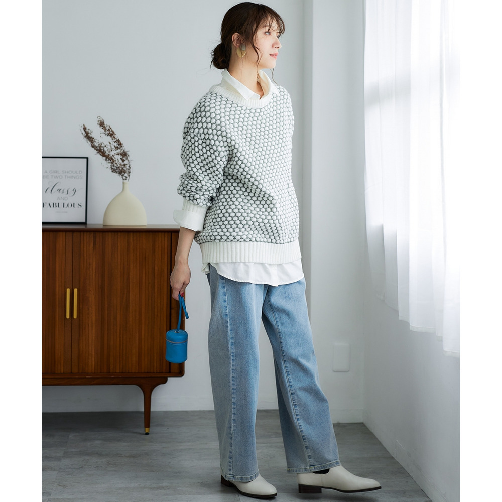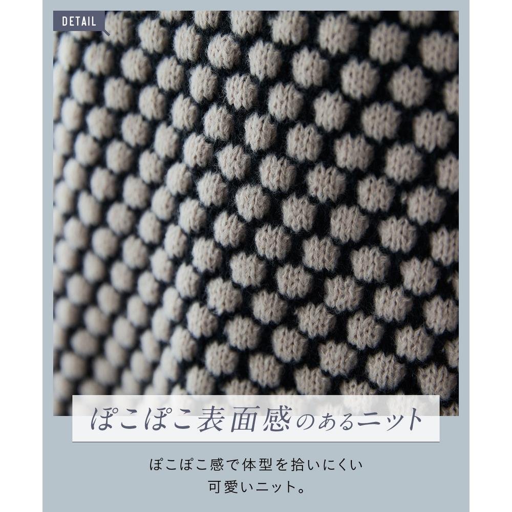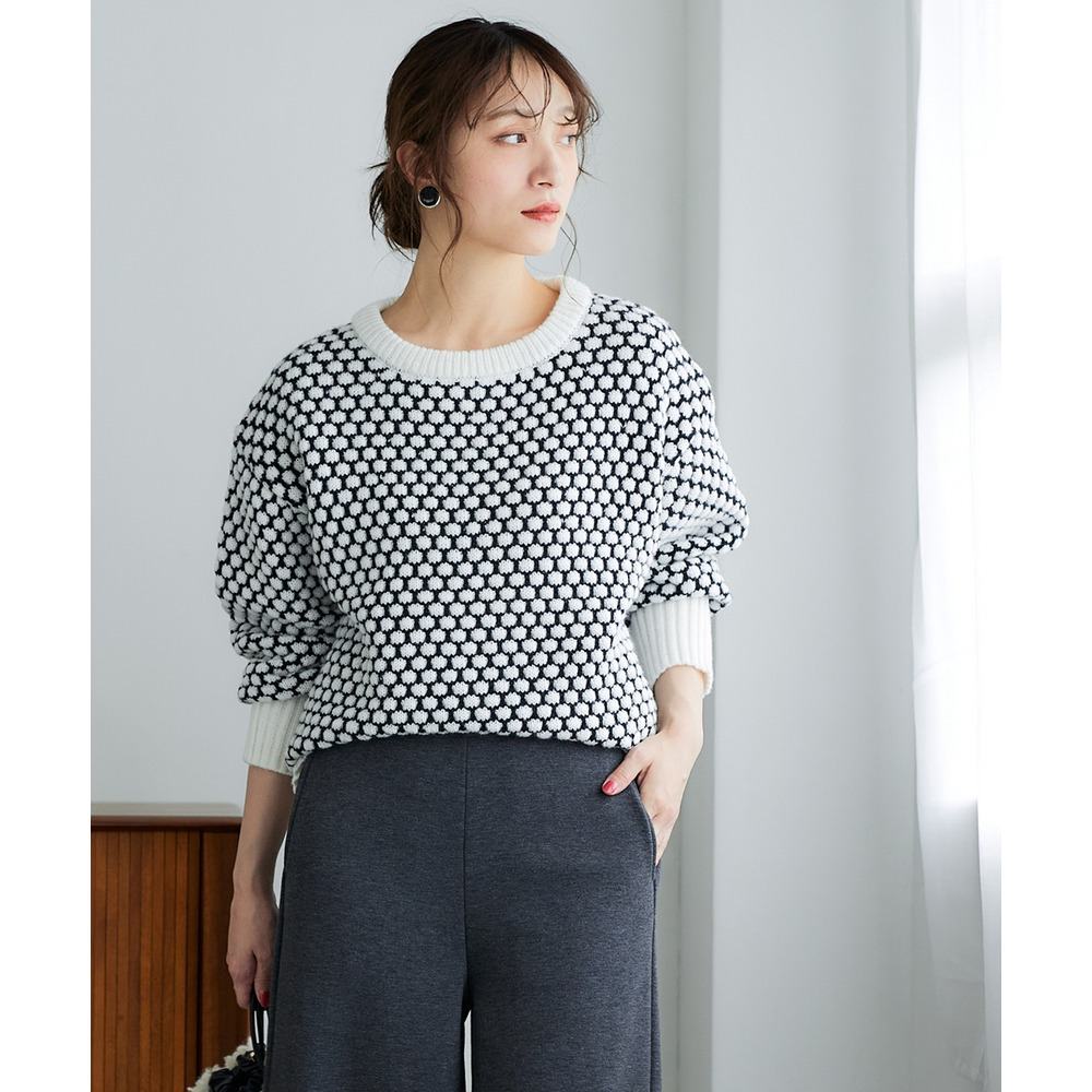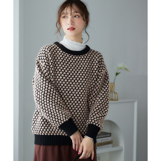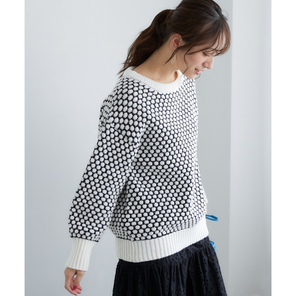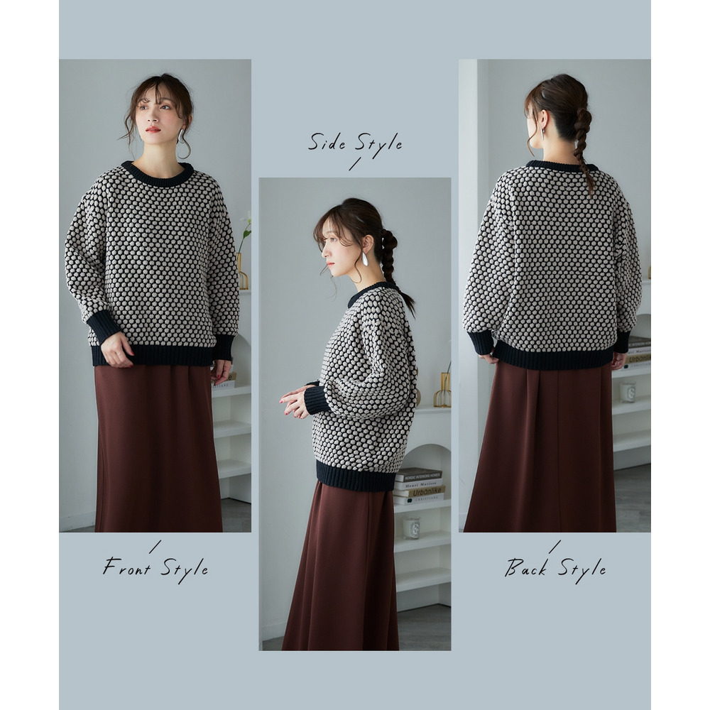 思わず触れたくなるような「ぽこぽこ」とした立体的な編み地が魅力のオーバーサイズニット。