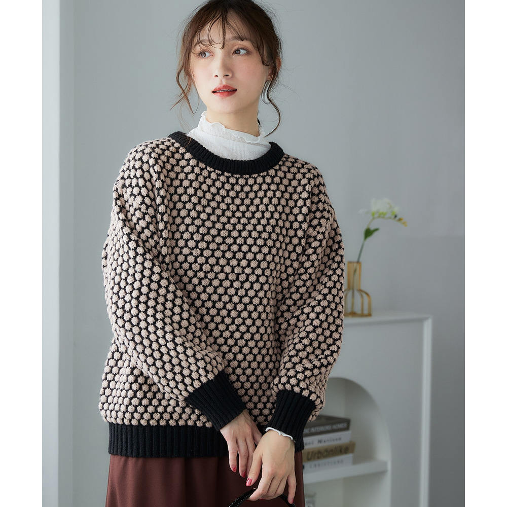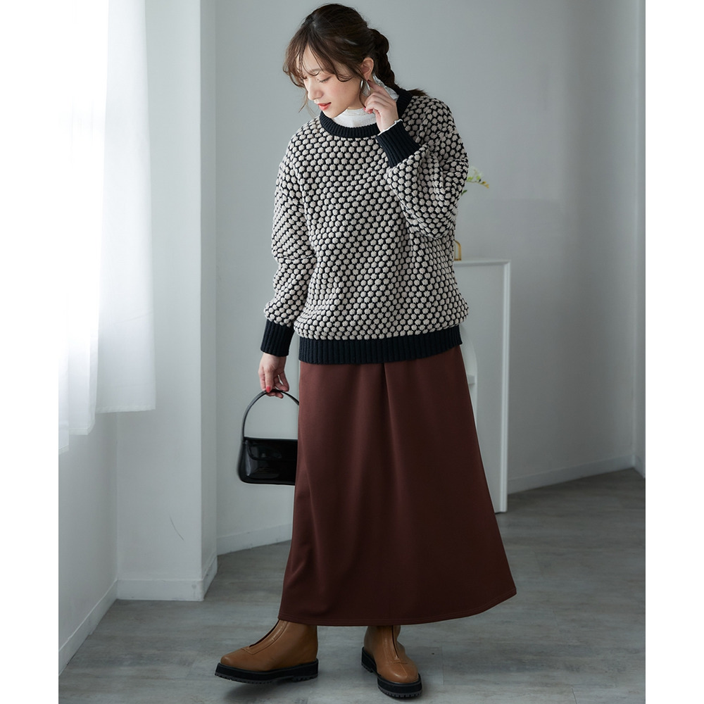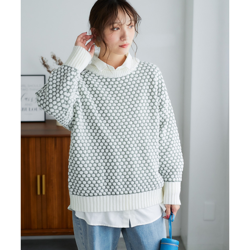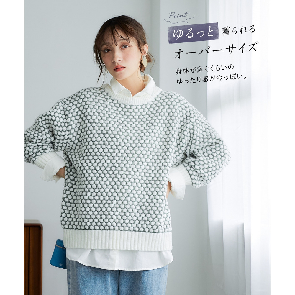 ぽこぽこ配色ジャガードオーバーサイズニット 大きいサイズ