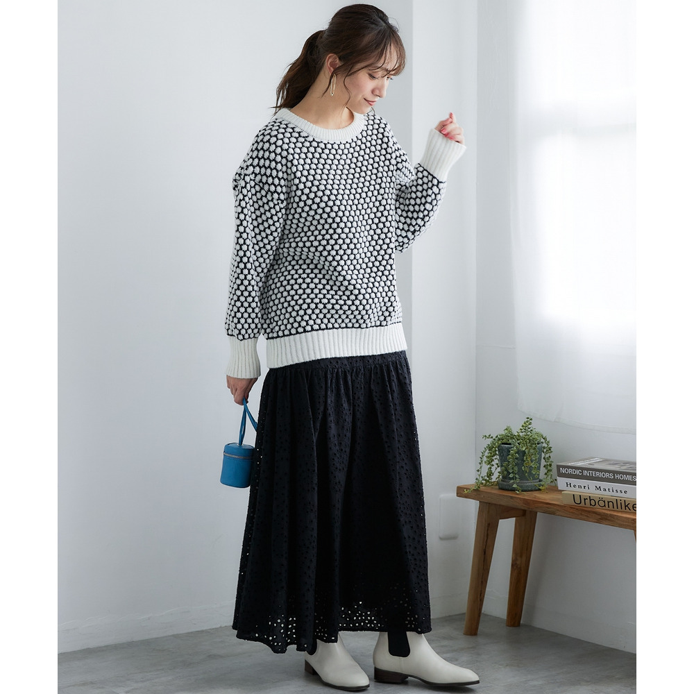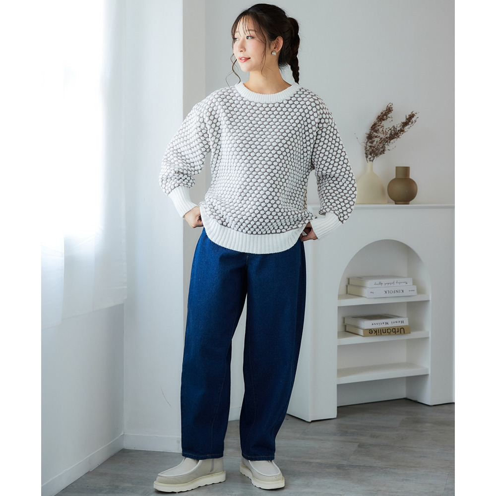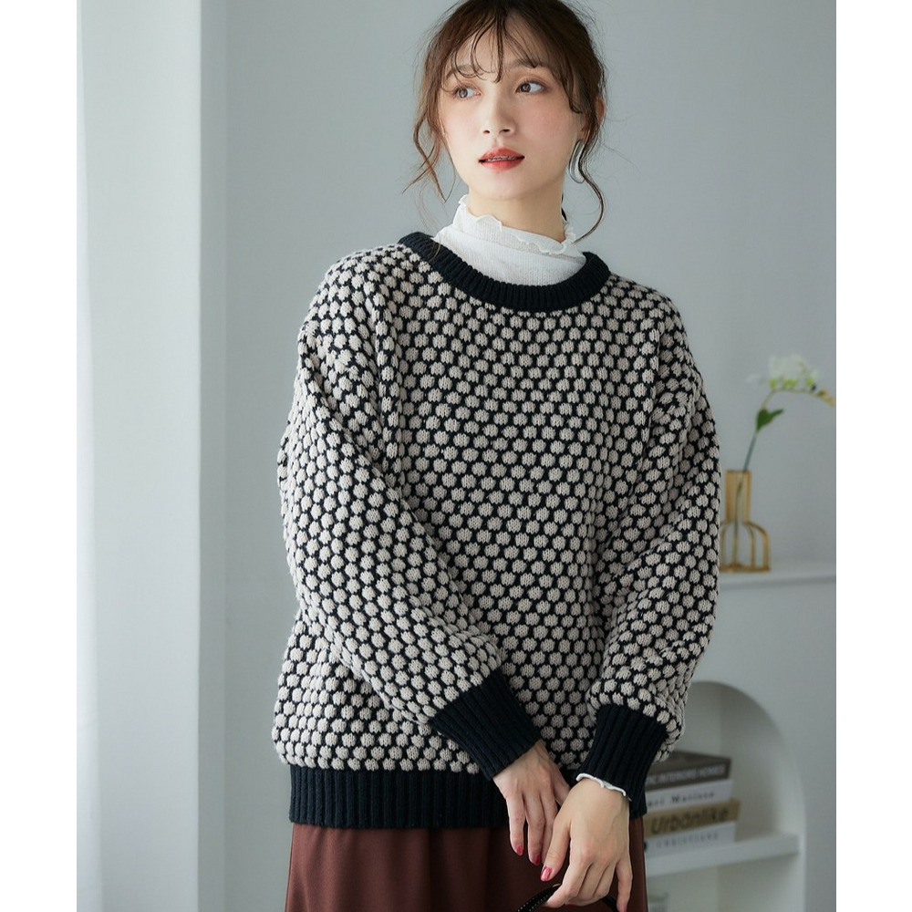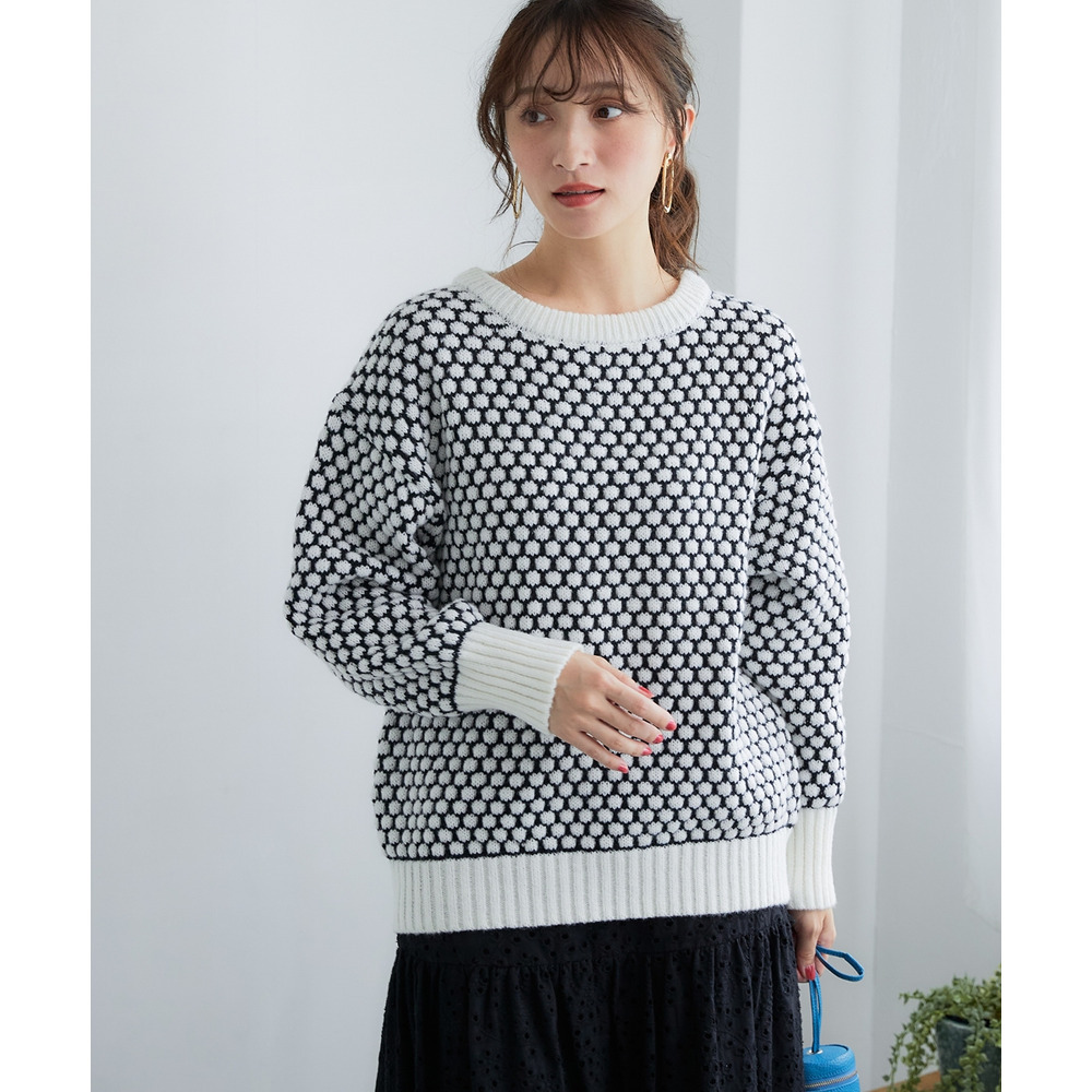ぽこぽこ配色ジャガードオーバーサイズニット 大きいサイズ