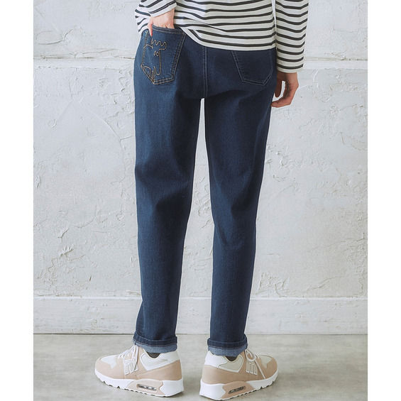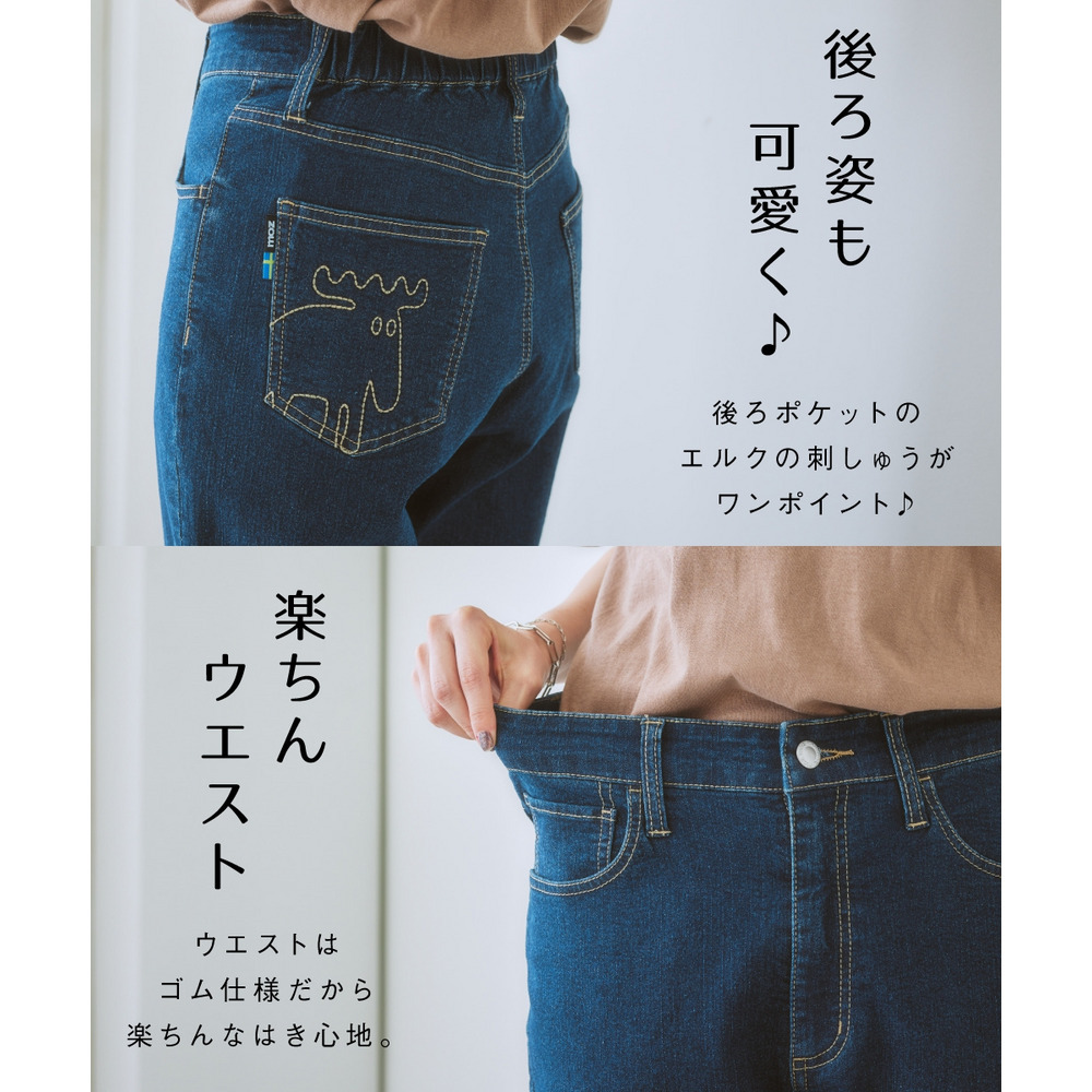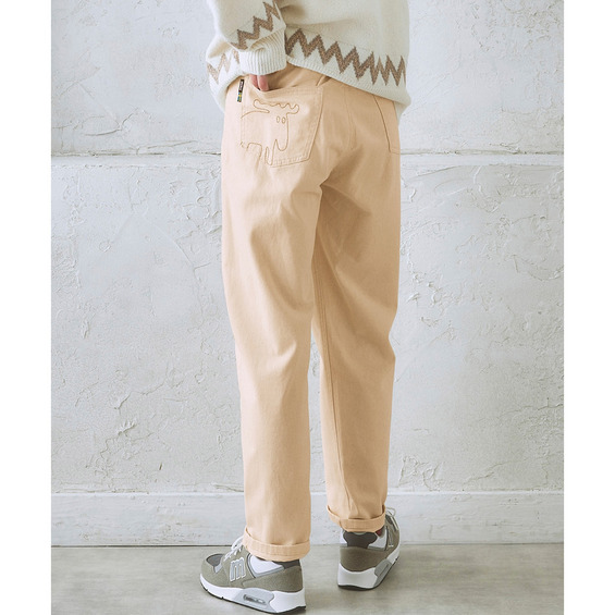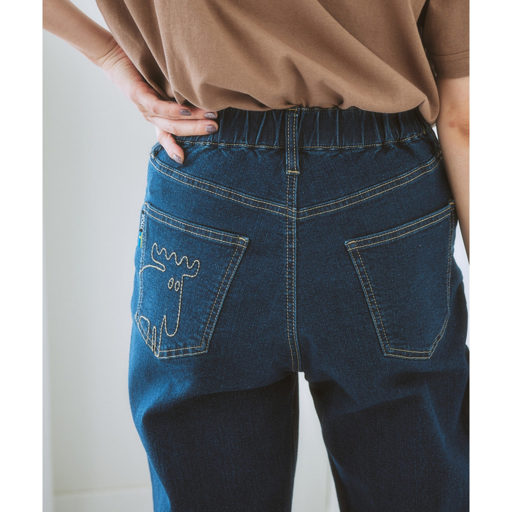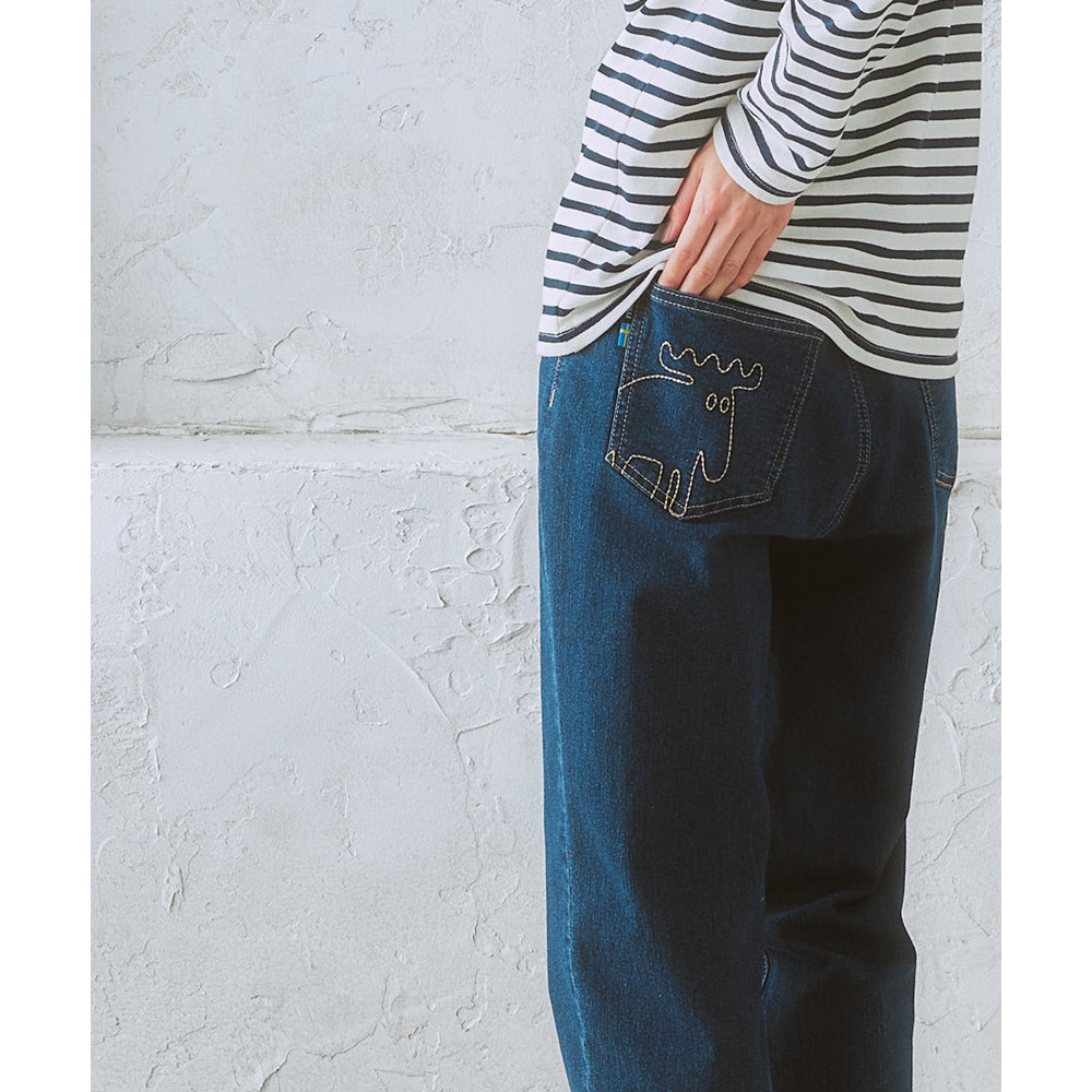 後ろポケットのエルクの刺繍はステッチと同色で、主張し過ぎずポイントになり、トップス裾からちらっと覗くのがとてもかわいいです。