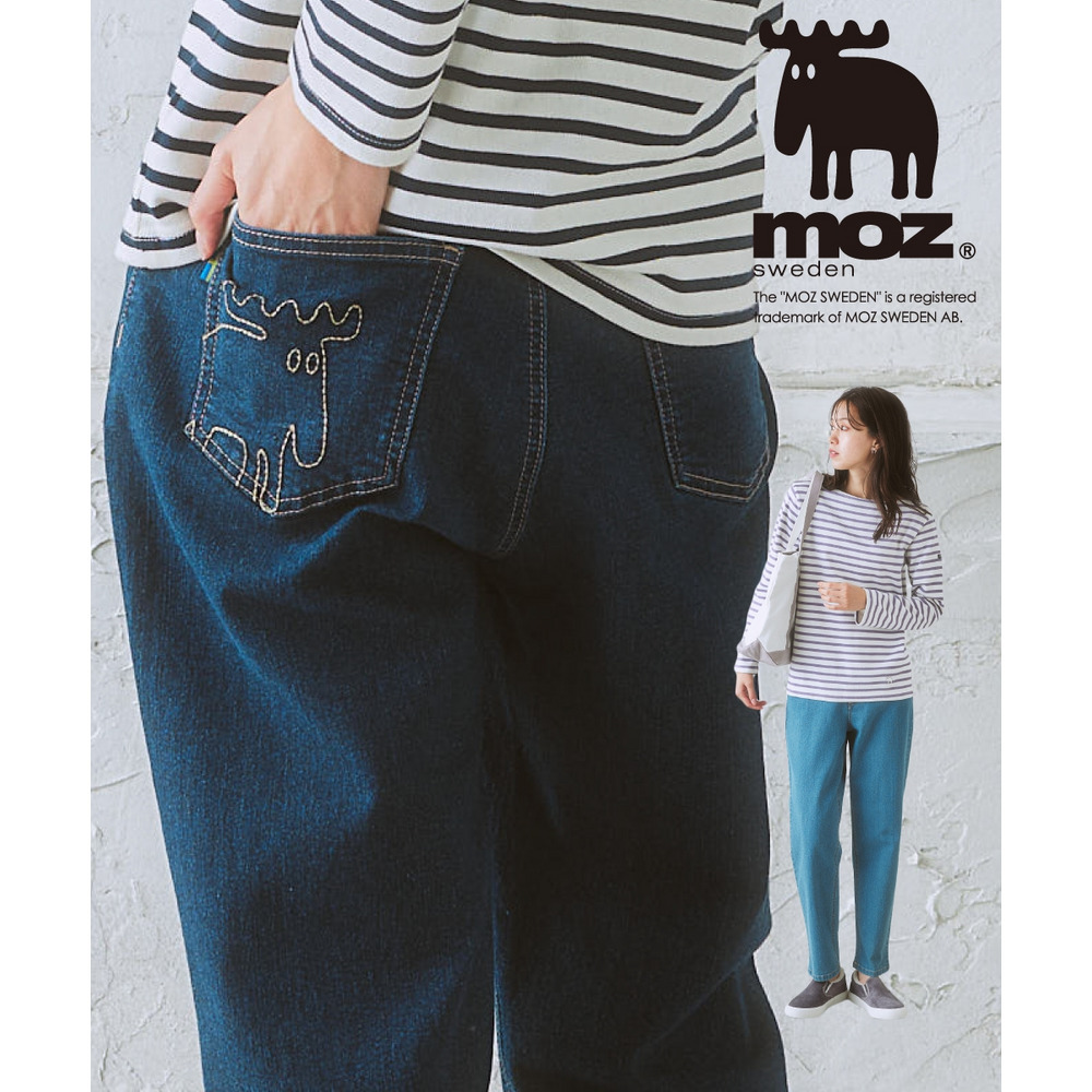 • moz(モズ)後刺しゅうテーパードデニムパンツ 大きいサイズ20