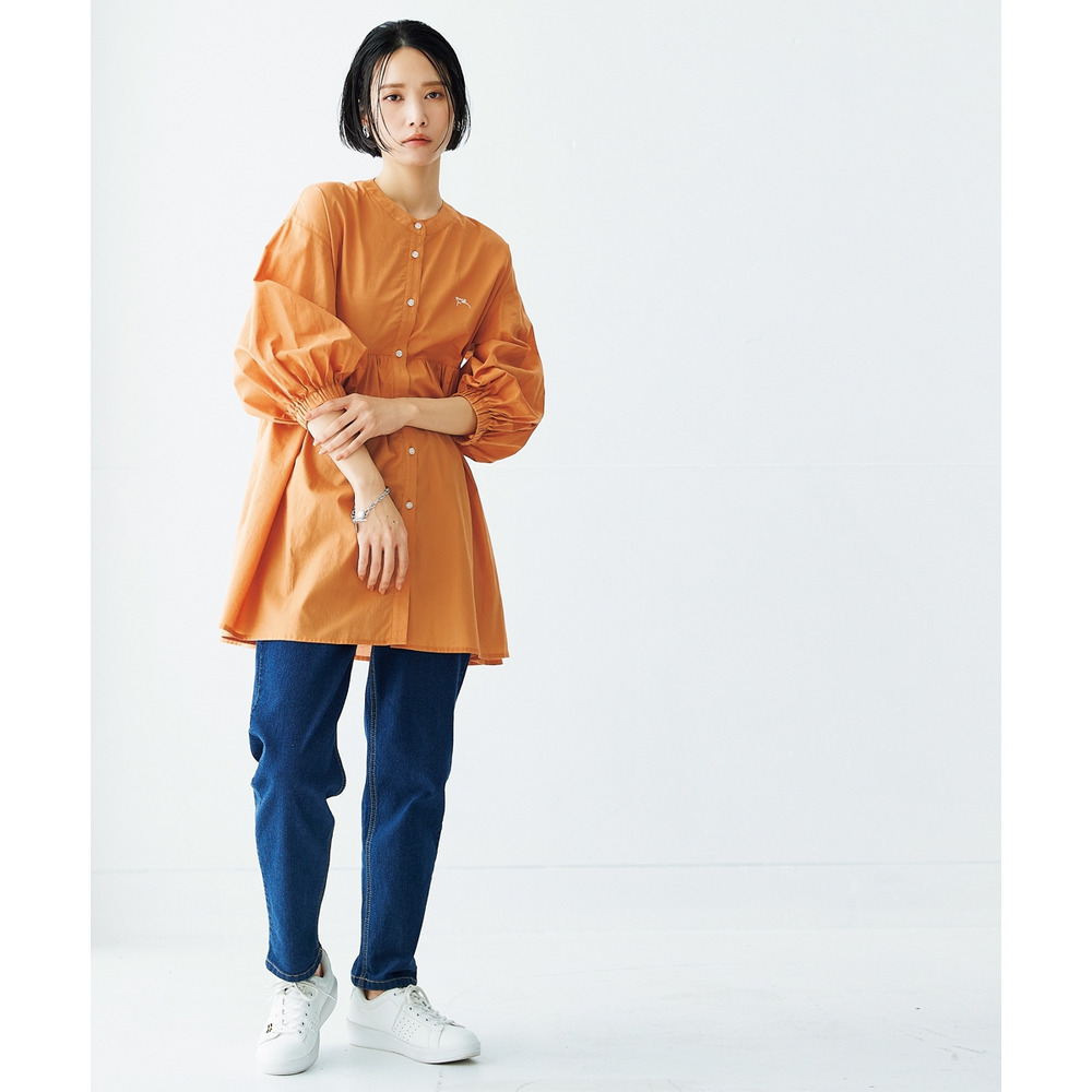 秋:ティアードブラウスなどふんわりしたシルエットのトップスの下に合わせると、デニムのテーパードシルエットが際立ち、スタイルがよく見えます。