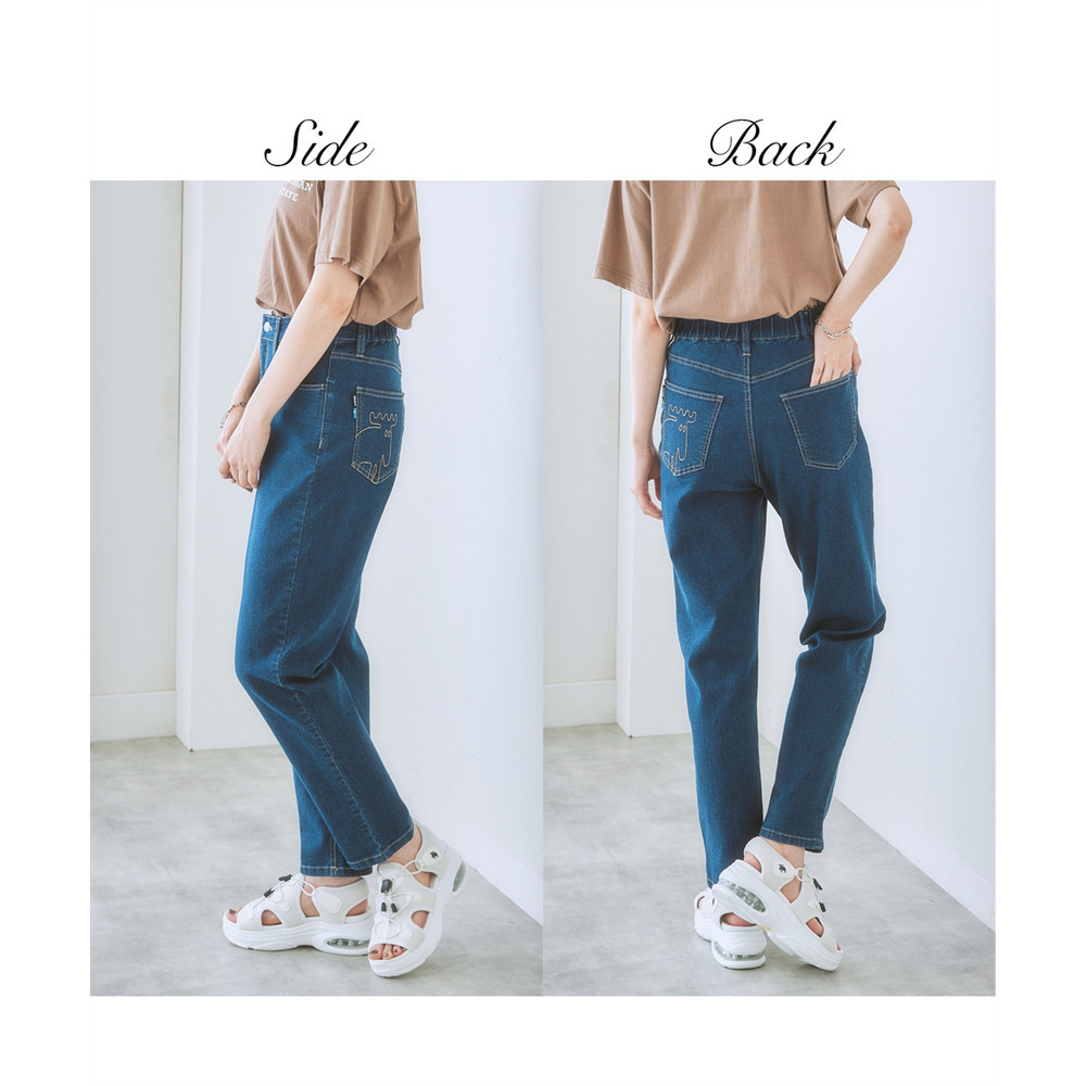 • moz(モズ)後刺しゅうテーパードデニムパンツ 大きいサイズ8