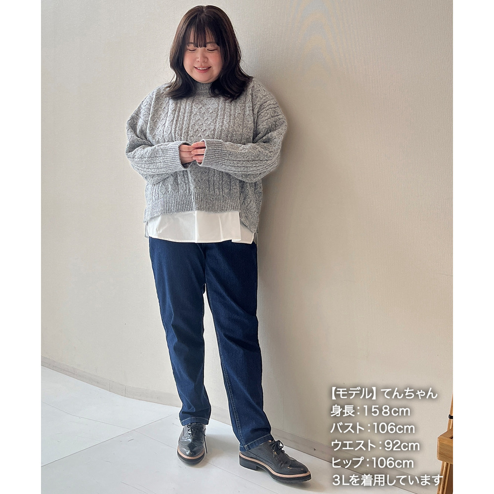 • moz(モズ)後刺しゅうテーパードデニムパンツ 大きいサイズ12