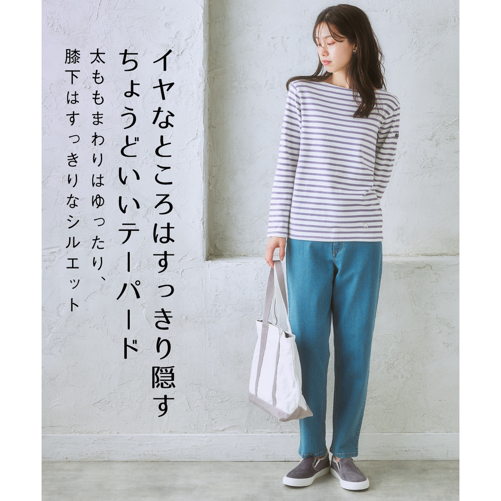 太もも周りは余裕を持たせ、膝下からすっきり見える形のテーパードシルエットでスタイルアップを叶えます。