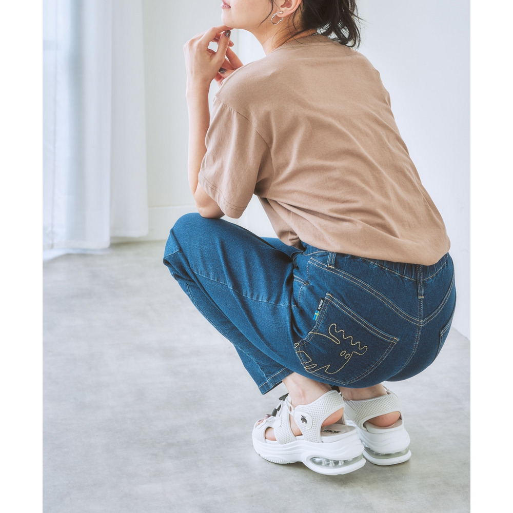 夏はトップスをインして、後ろのエルク刺繍をチラ見せするコーディネートが可愛いです。