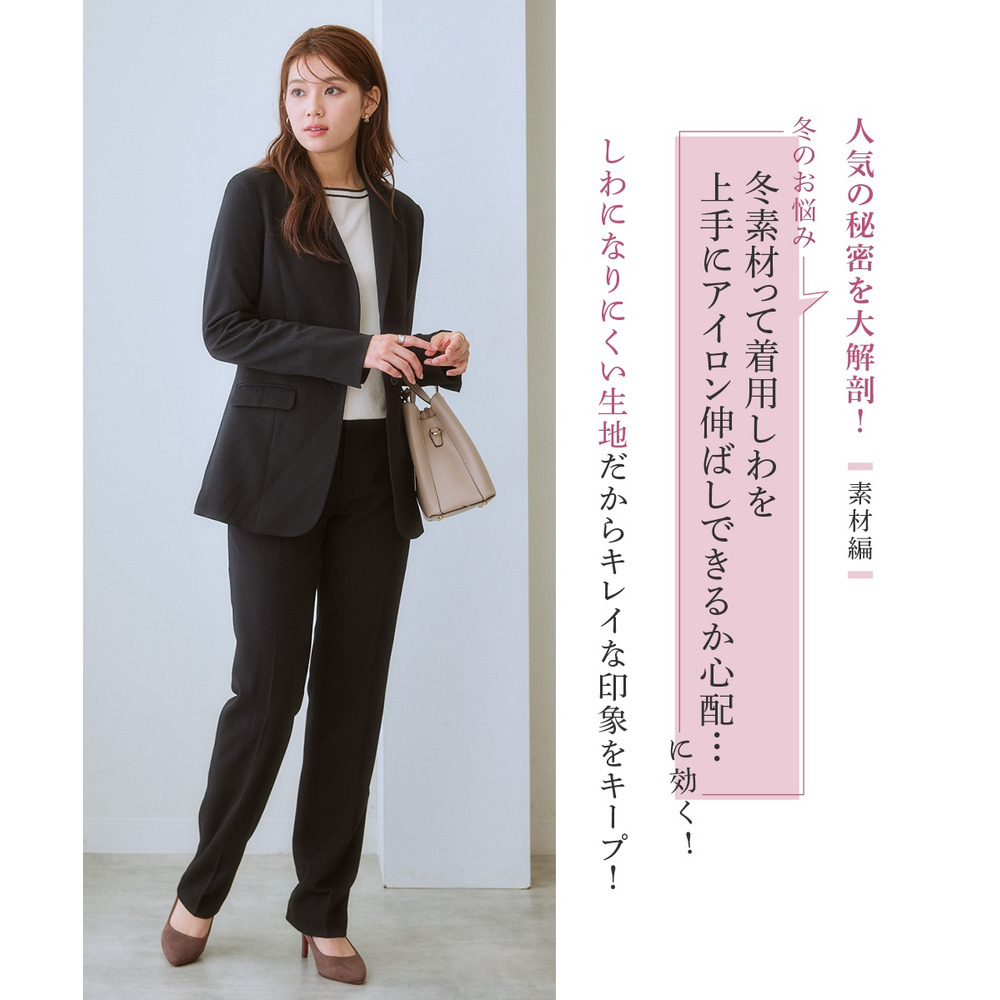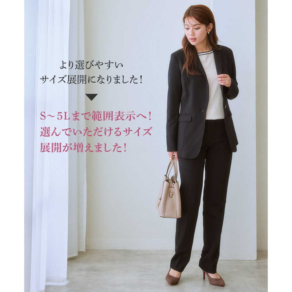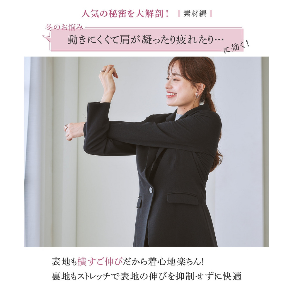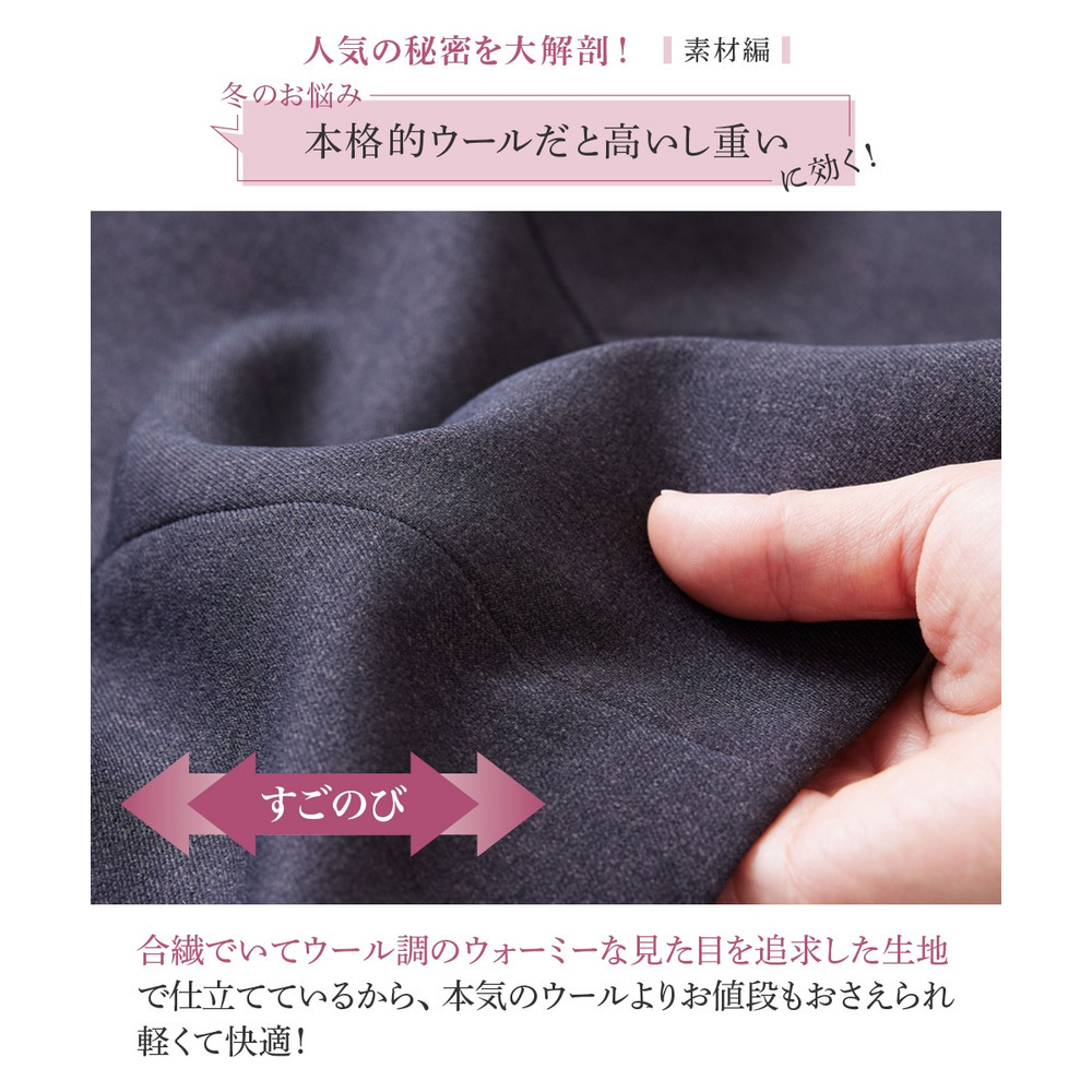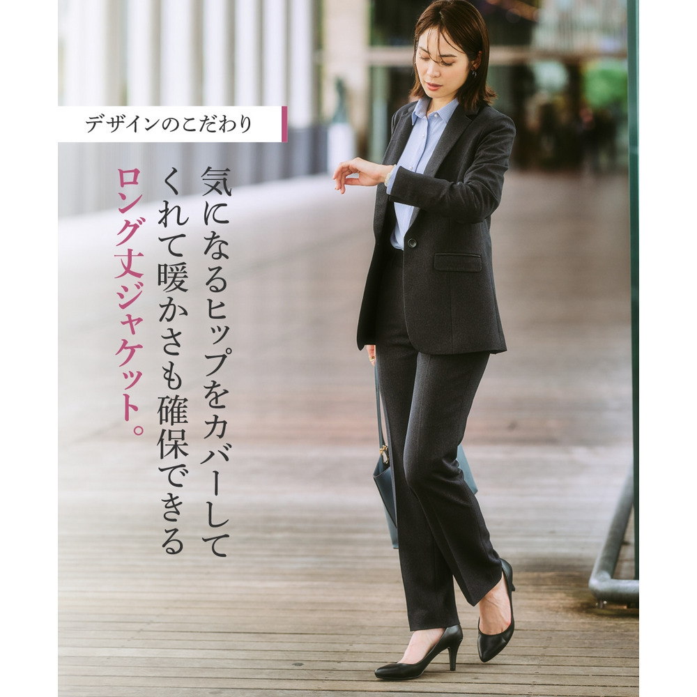 【レディーススーツ】あったか裏地付◎洗えるすごく伸びるウール調ロング丈テーラードジャケットパンツスーツ(ストレッチ蓄熱裏地付) 大きいサイズ