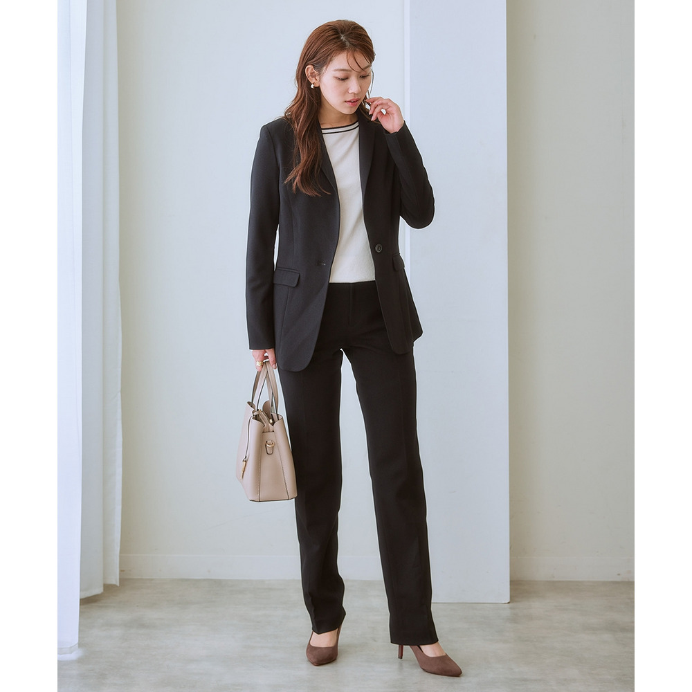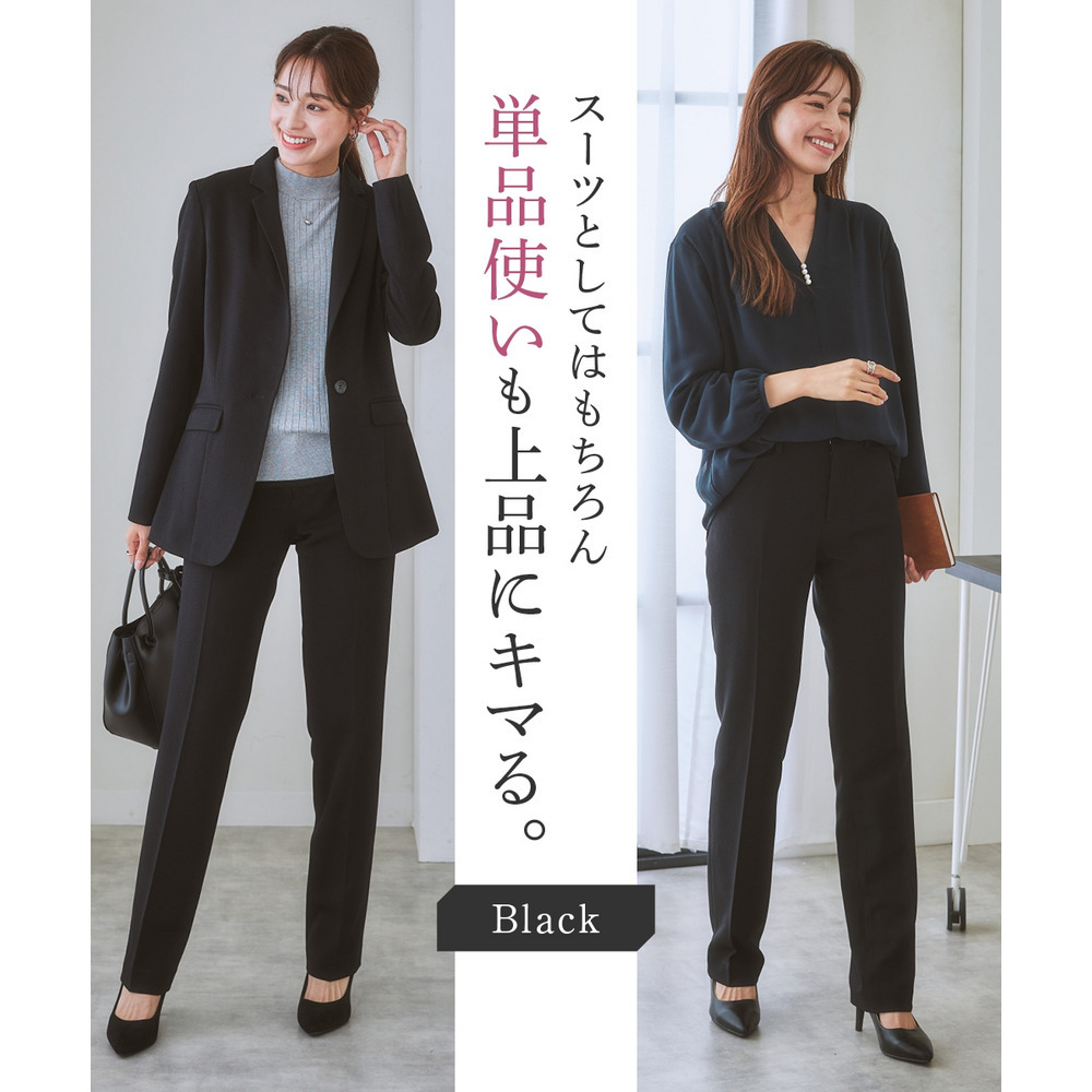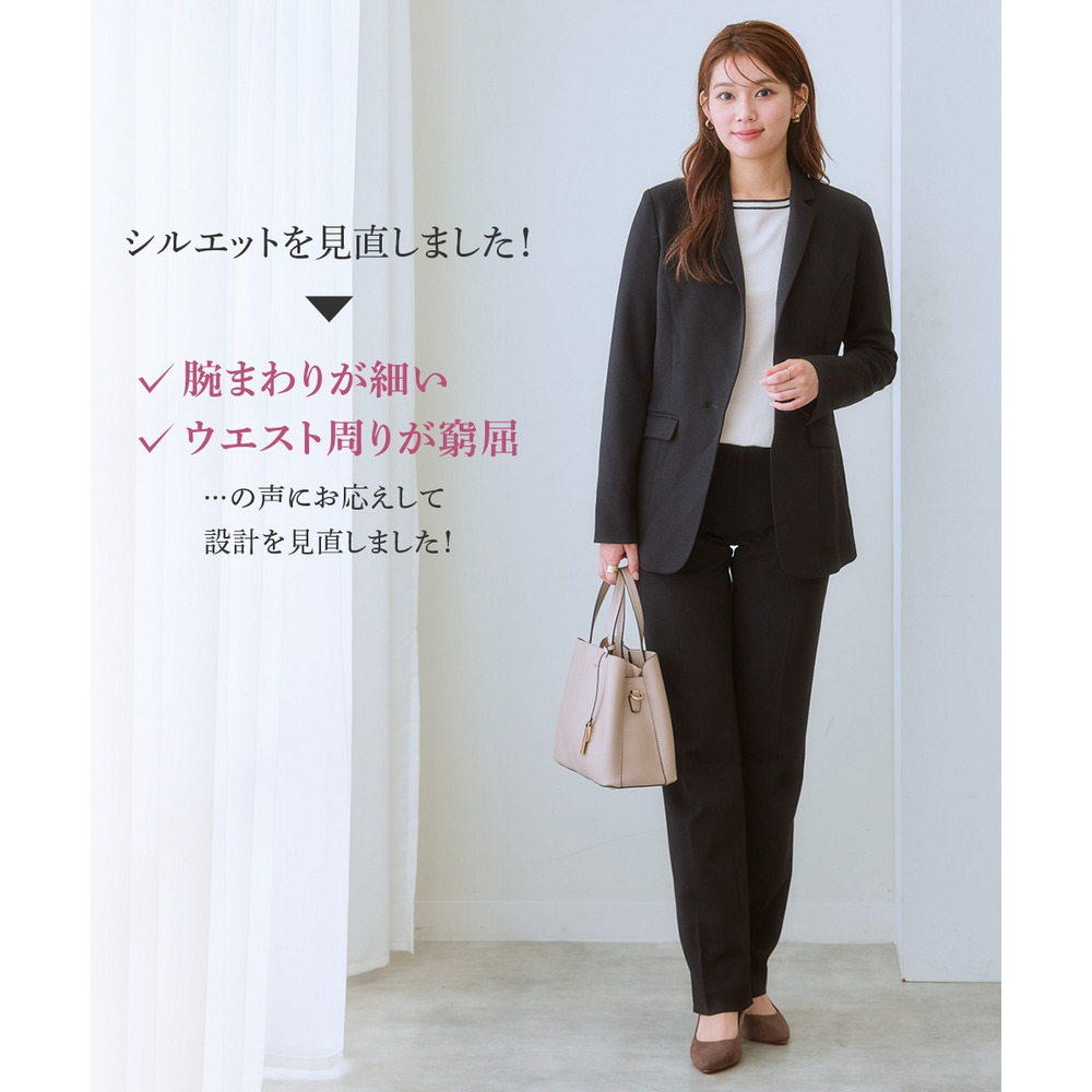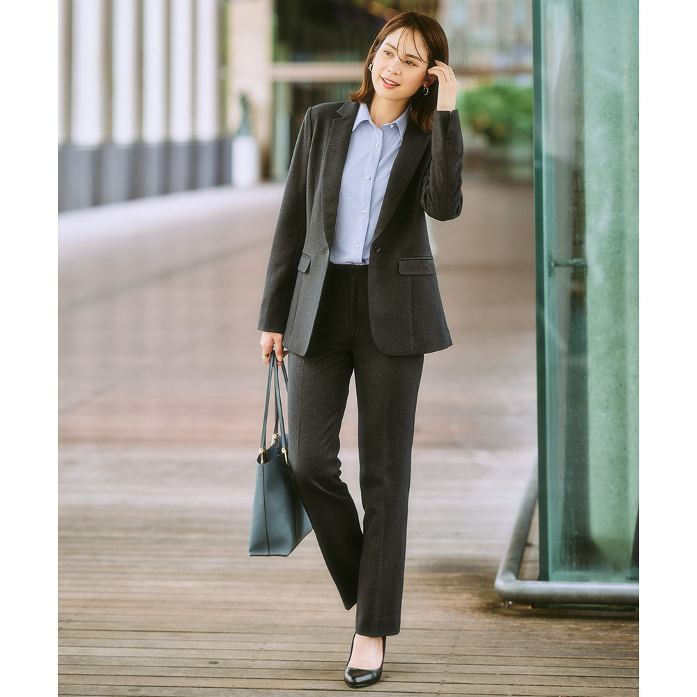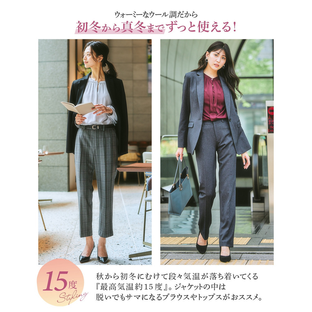 【レディーススーツ】あったか裏地付◎洗えるすごく伸びるウール調ロング丈テーラードジャケットパンツスーツ(ストレッチ蓄熱裏地付) 大きいサイズ