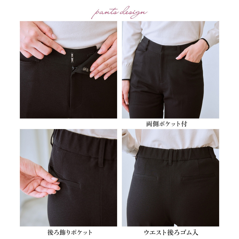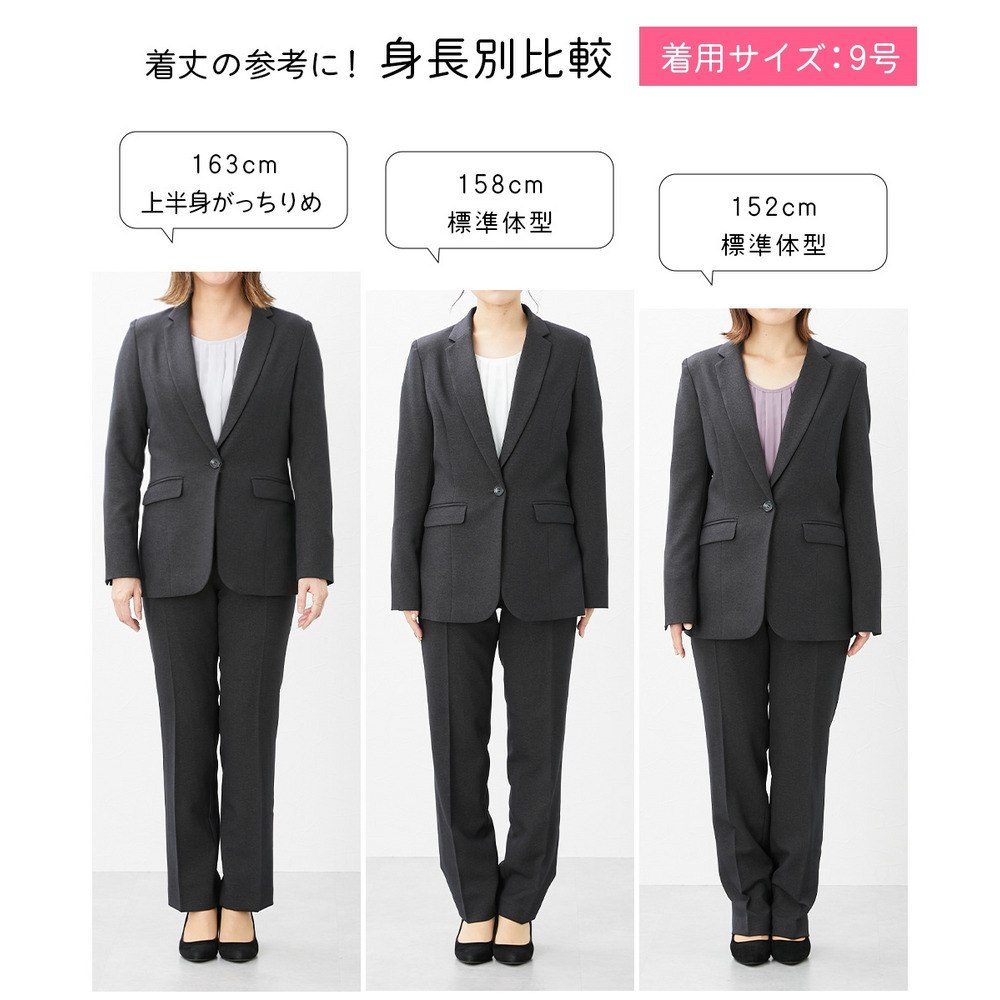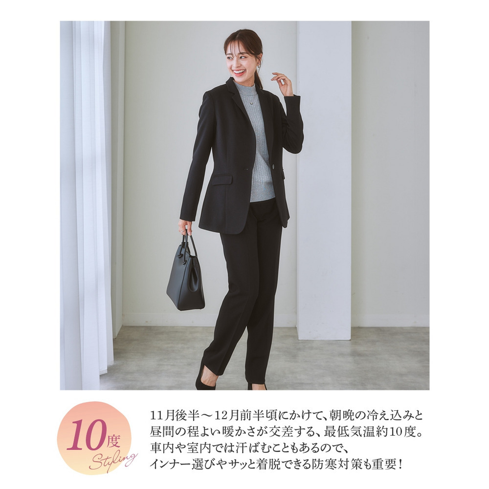 | 素材 | 品質:[表地]ポリエステル100% (織物 ストレッチ綾織)ジャケット:肩パッド有(取外し不可) 前ボタン開 袖口ベンツ 後ベンツ ポケット前2・内 パンツ:前ファスナー内ボタン付ホック開 ウエスト後ゴム入 ポケット前2・後飾り ※この商品は上下同サイズのみで販売します。 ※ジャケットは15号・LLサイズから五面体仕様です。 透け感:なし 伸縮性:あり 生地の厚み:やや厚手 微起毛 光沢感:なし 裏地:有(総裏:蓄熱ストレッチ裏地使用) 季節:秋・冬 シルエット:普通 |